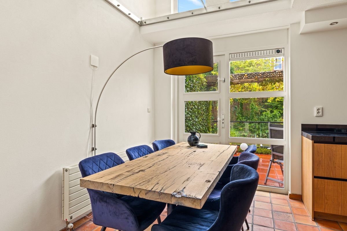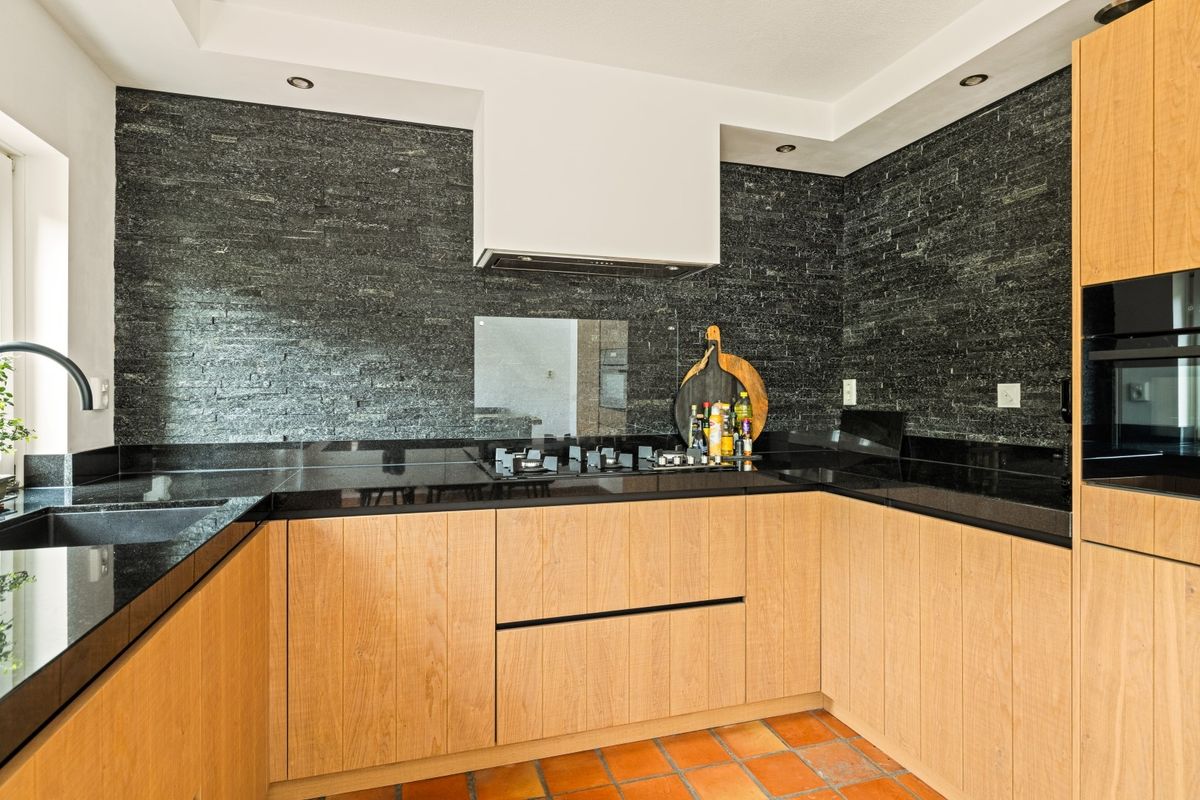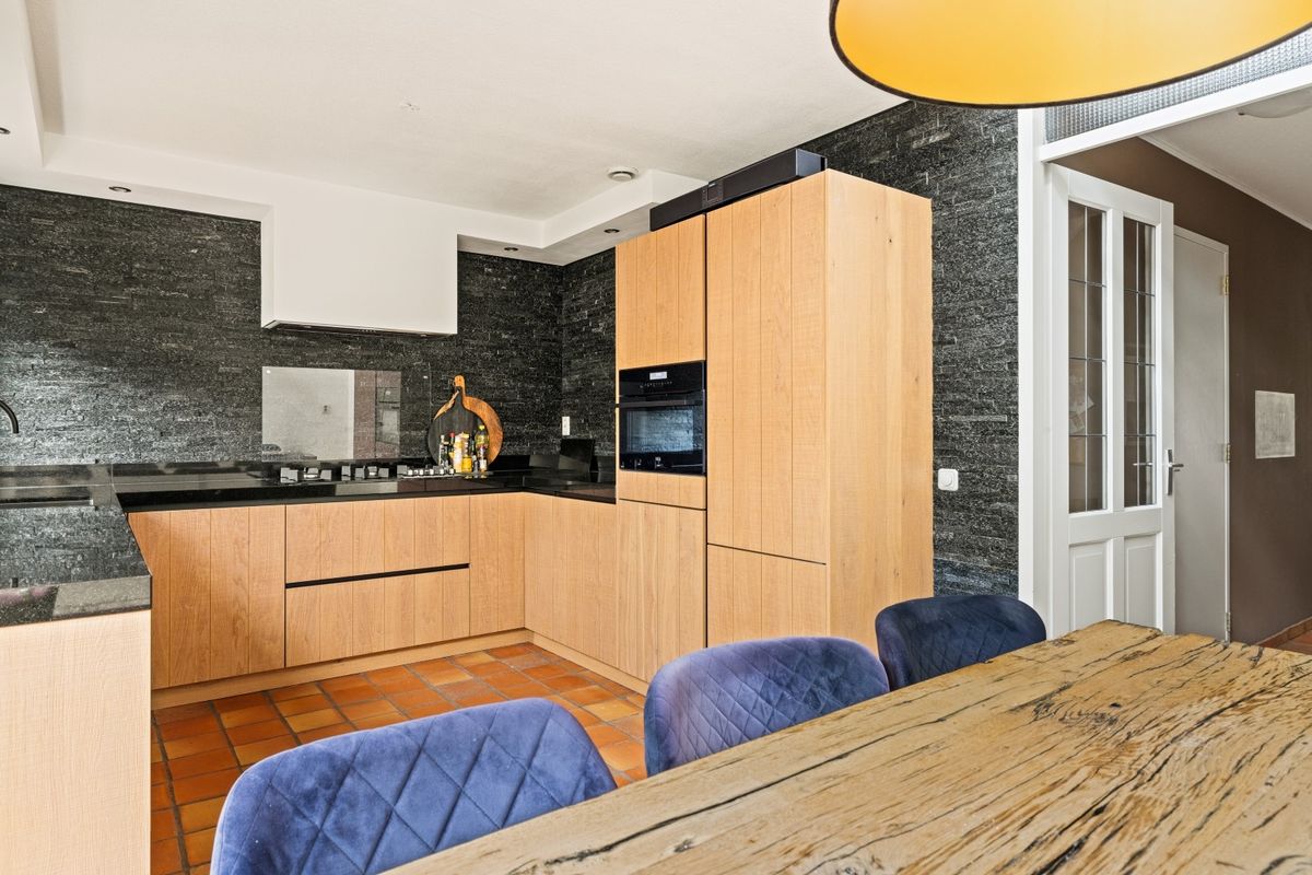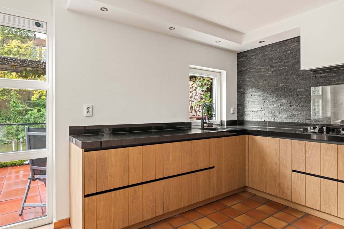 Aan de achterzijde van de woning bevindt zich de ruime en moderne woonkeuken met openslaande deuren naar het heerlijke terras van ca. 20 m² aan het water, gelegen op het zonnige zuidwesten. Hier geniet u in alle rust van de middag- en avondzon. De luxe keuken, uit 2022, is voorzien van vloerverwarming en uitgerust met een 5-pits gasfornuis, oven, koelkast en vaatwasser. Boven de eettafel bevindt zich een indrukwekkende vide van 5,16 meter hoog, wat zorgt voor een prachtige lichtinval en een zeer ruimtelijk gevoel.