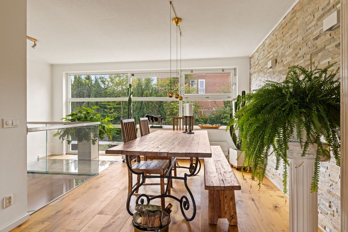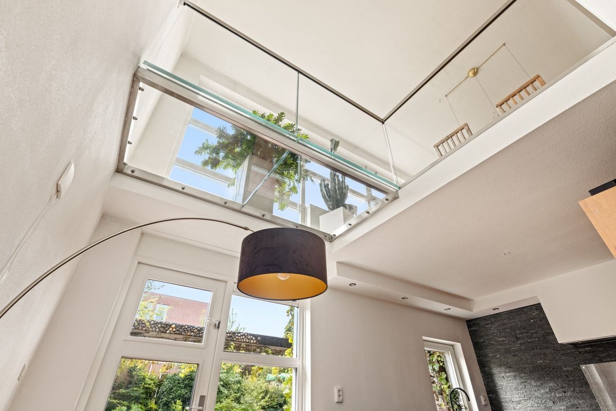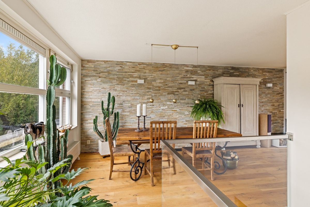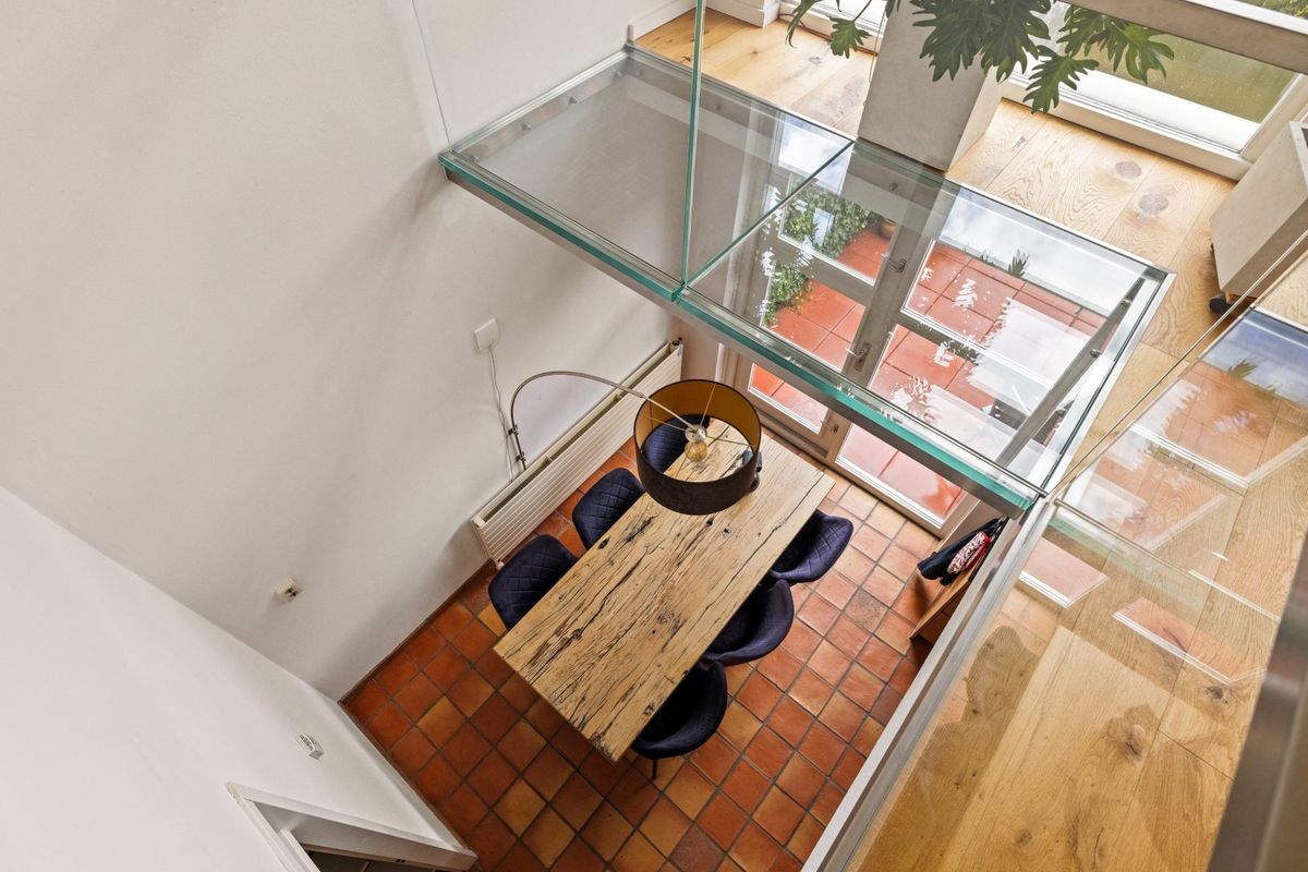 Aan de achterzijde van de woning bevindt zich de ruime en moderne woonkeuken met openslaande deuren naar het heerlijke terras van ca. 20 m² aan het water, gelegen op het zonnige zuidwesten. Hier geniet u in alle rust van de middag- en avondzon. De luxe keuken, uit 2022, is voorzien van vloerverwarming en uitgerust met een 5-pits gasfornuis, oven, koelkast en vaatwasser. Boven de eettafel bevindt zich een indrukwekkende vide van 5,16 meter hoog, wat zorgt voor een prachtige lichtinval en een zeer ruimtelijk gevoel.