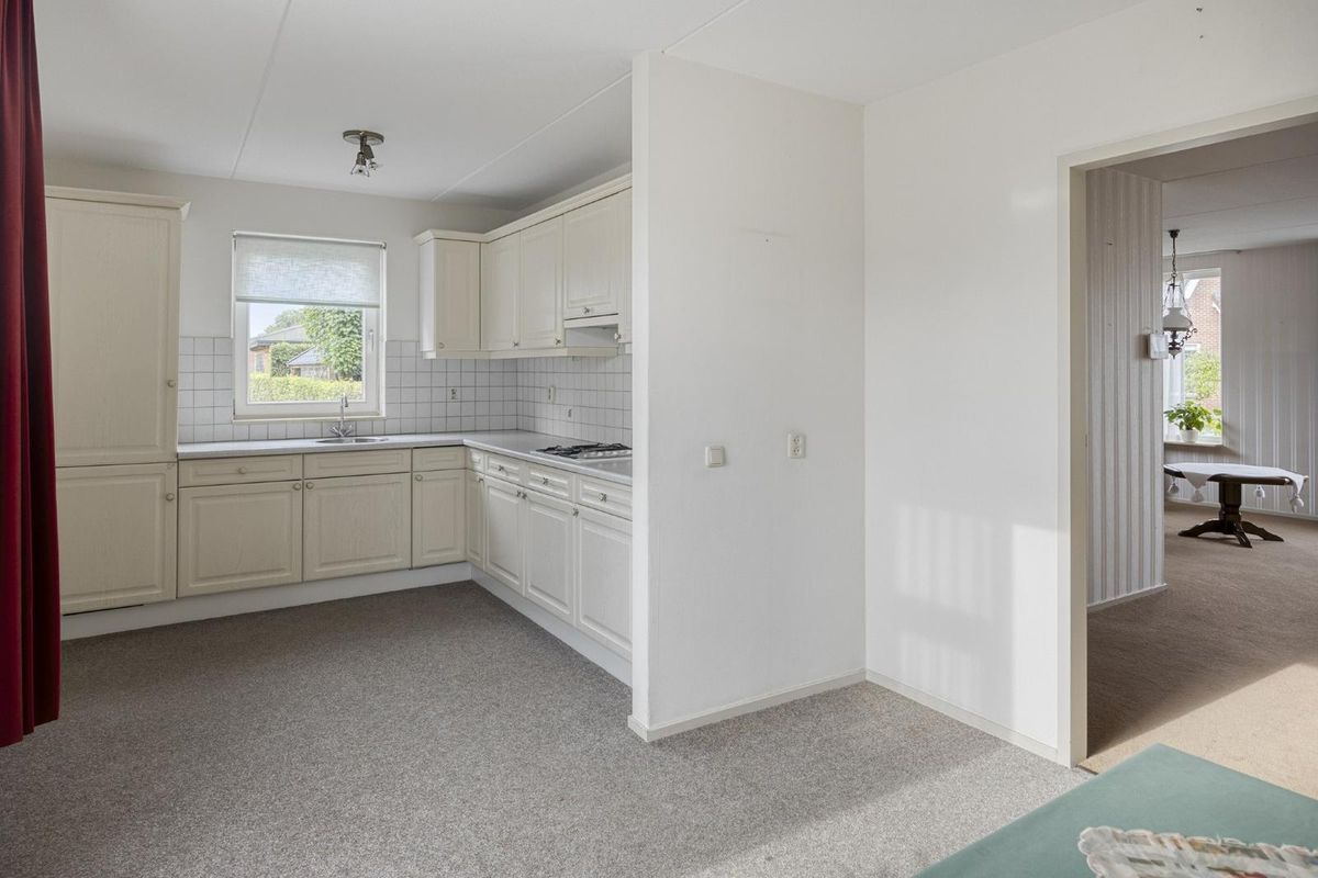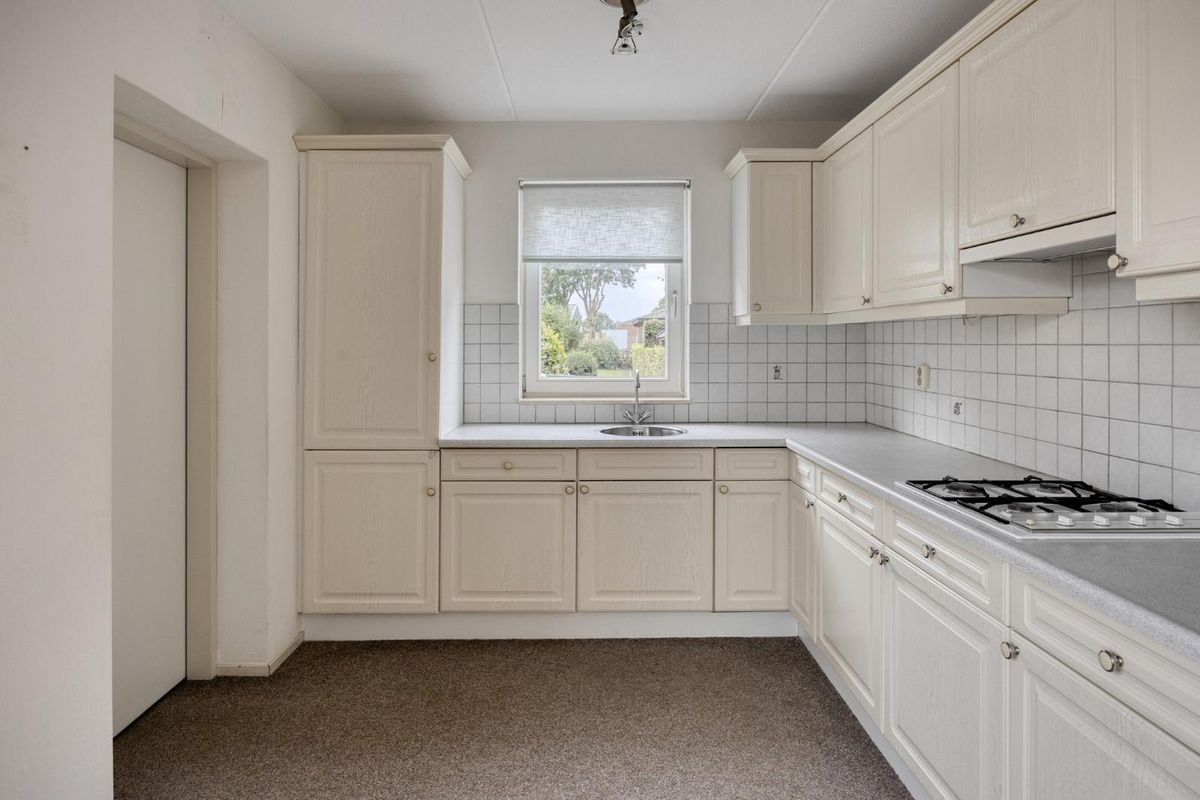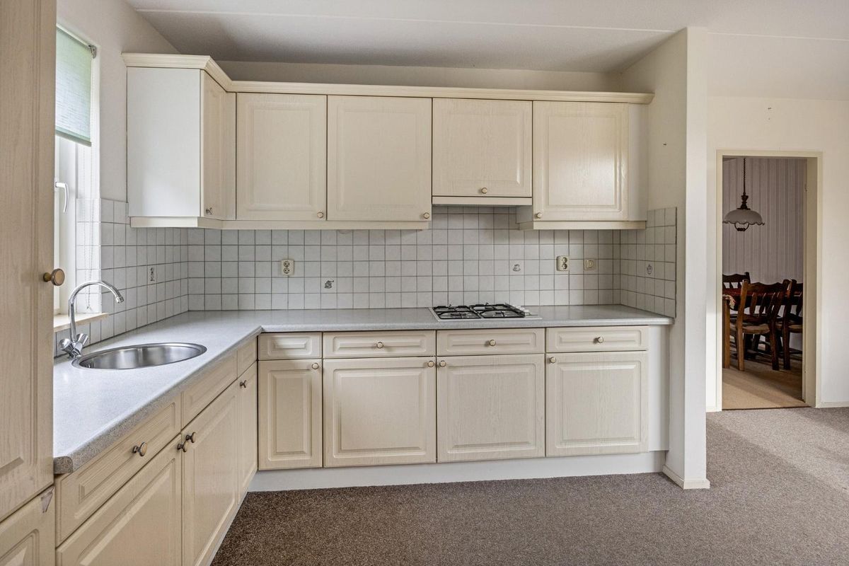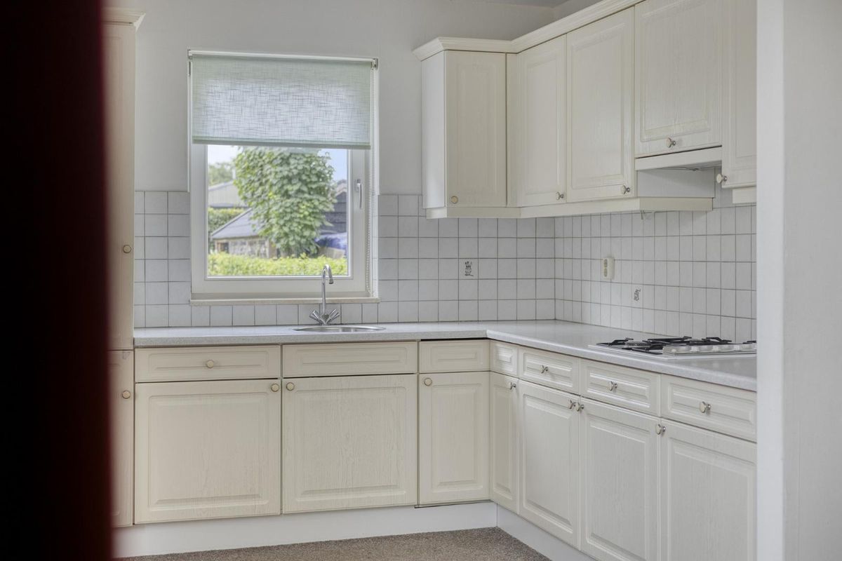 Aan de achterzijde bevindt zich de keuken in hoekopstelling.
