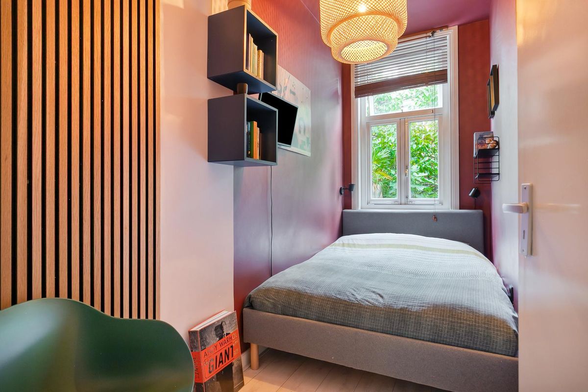 Het souterrain (meer dan 12 meter diep) biedt ruimte aan een moderne, sfeervolle keuken (2023), volledig uitgerust met oven, vaatwasser, inductiekookplaat, Quooker en koel-vriescombinatie. De cv-combiketel (Intergas, 2024) is netjes weggewerkt in een keukenkast. De aangrenzende woonkamer heeft een warme uitstraling en staat in open verbinding met de keuken. Via openslaande deuren stap je de groene stadstuin in (ca. 8 bij 5 meter), gelegen op het westen, met ruimte voor zowel een zithoek als eettafel.