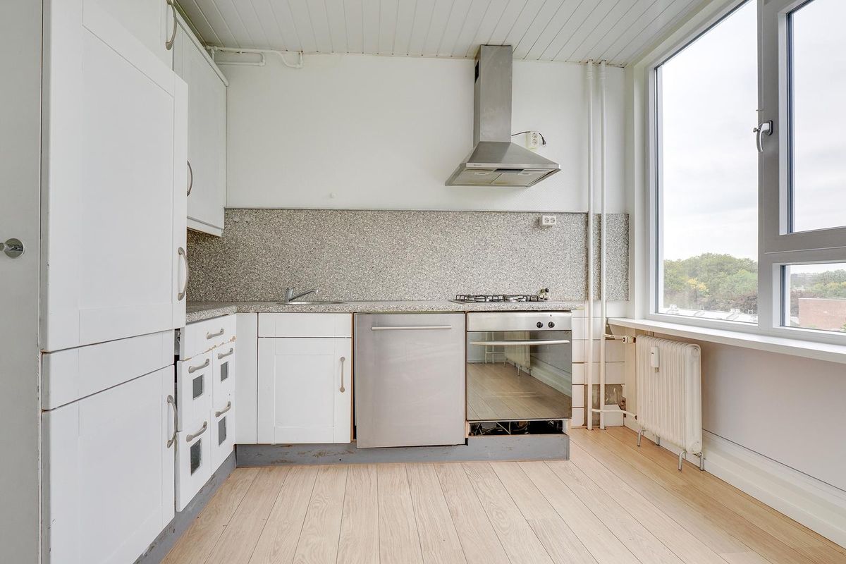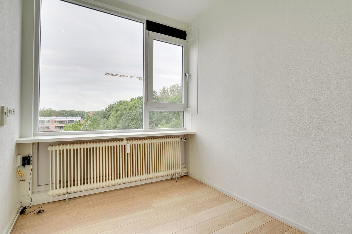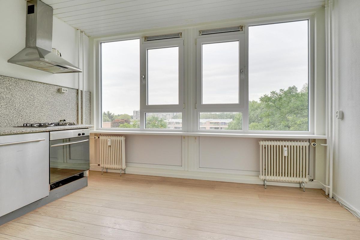 Op de vijfde verdieping van een verzorgd appartementencomplex ligt dit lichte tweekamerappartement van 56 m², voorzien van een balkon, een ruime woonkeuken en een eigen afgesloten berging op de begane grond. Zowel de woonkamer, slaapkamer als woonkeuken beschikken over kamerbrede raampartijen met uitzicht op de bomen en daken van de stad, waardoor het appartement een ruimtelijk en zonnig gevoel biedt.