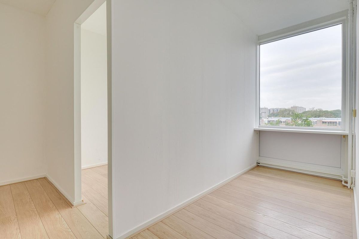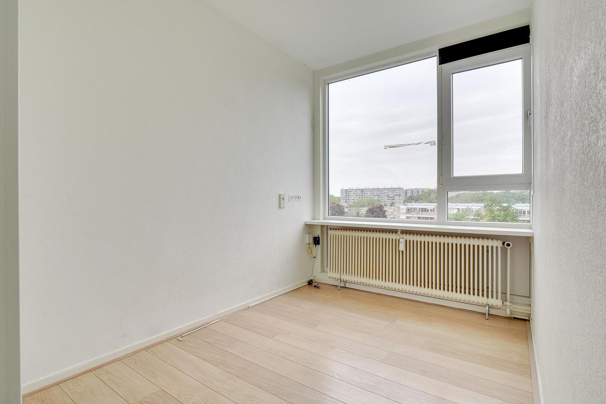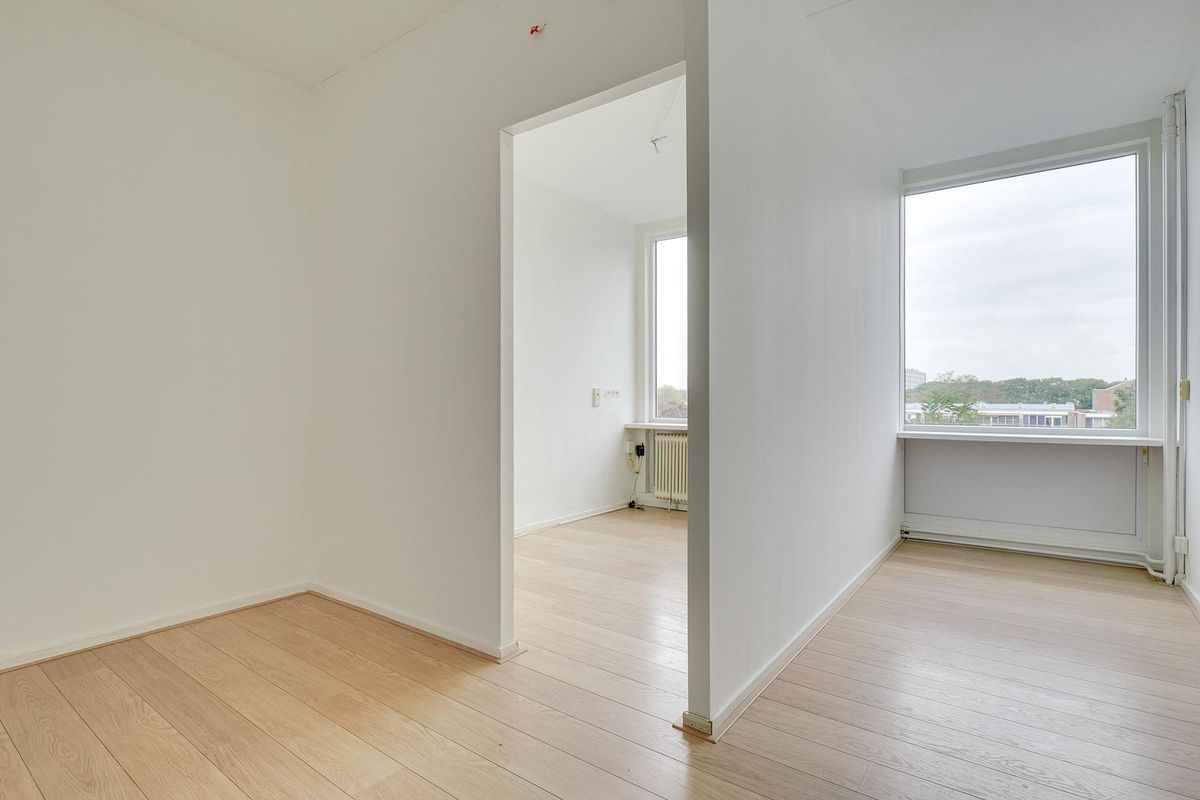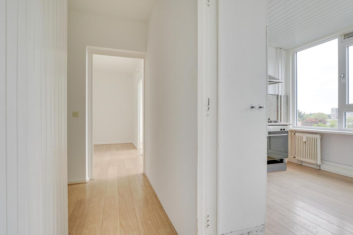 Op de vijfde verdieping van een verzorgd appartementencomplex ligt dit lichte tweekamerappartement van 56 m², voorzien van een balkon, een ruime woonkeuken en een eigen afgesloten berging op de begane grond. Zowel de woonkamer, slaapkamer als woonkeuken beschikken over kamerbrede raampartijen met uitzicht op de bomen en daken van de stad, waardoor het appartement een ruimtelijk en zonnig gevoel biedt.