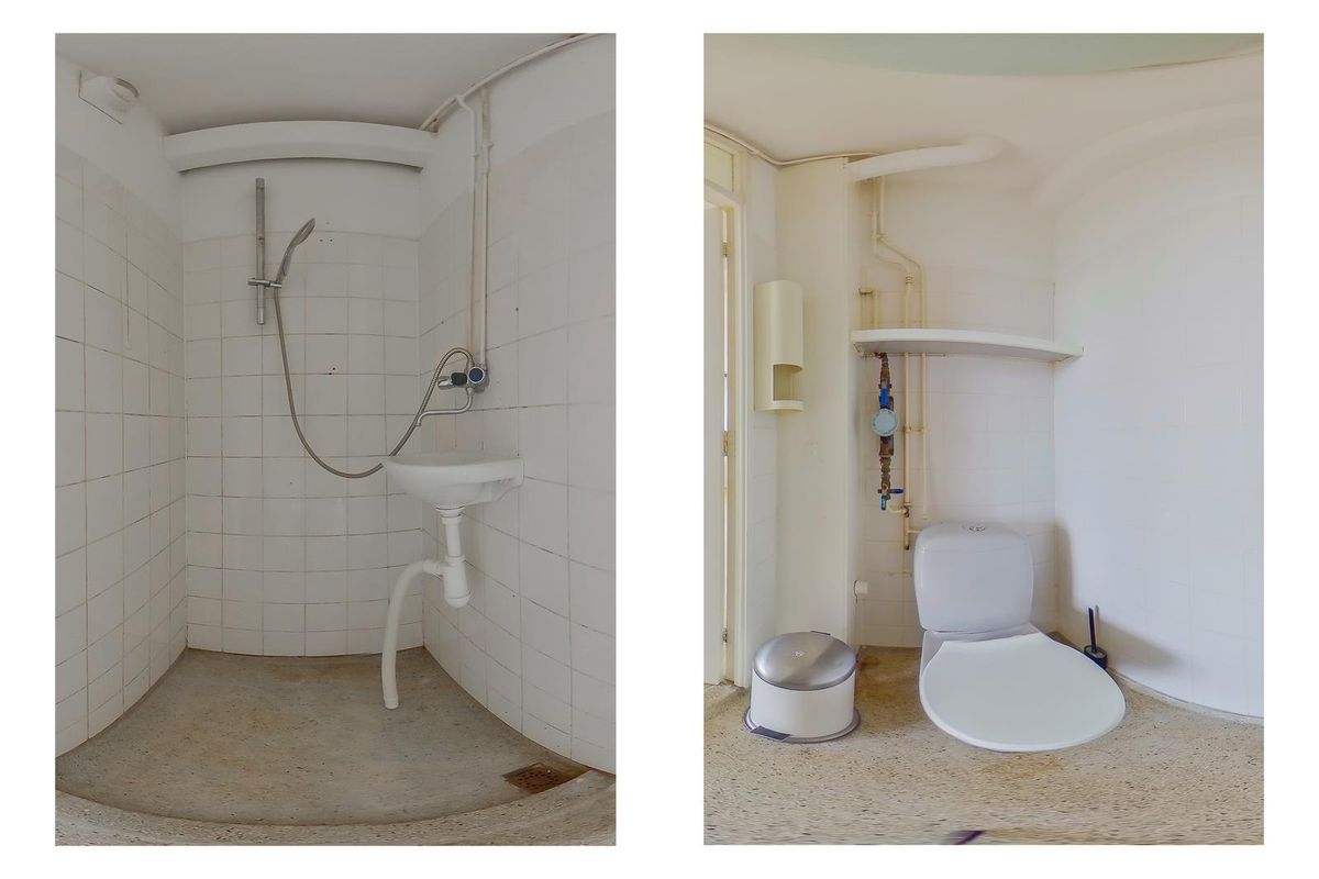Vijfde verdieping: Entree met hal en meterkast. Badkamer voorzien van douche, toilet en wastafel. Royale woonkamer met toegang tot het kamerbrede balkon. Ruime woonkeuken met hoekopstelling en apparatuur, genoeg ruimte voor een eethoek. Royale slaapkamer, opgesplitst met een kleinere kamer door middel van tussenwanden.