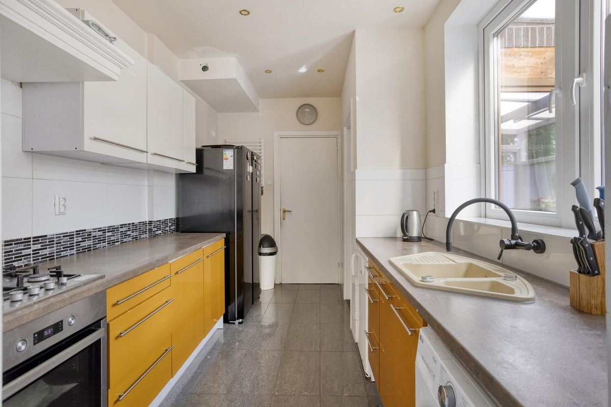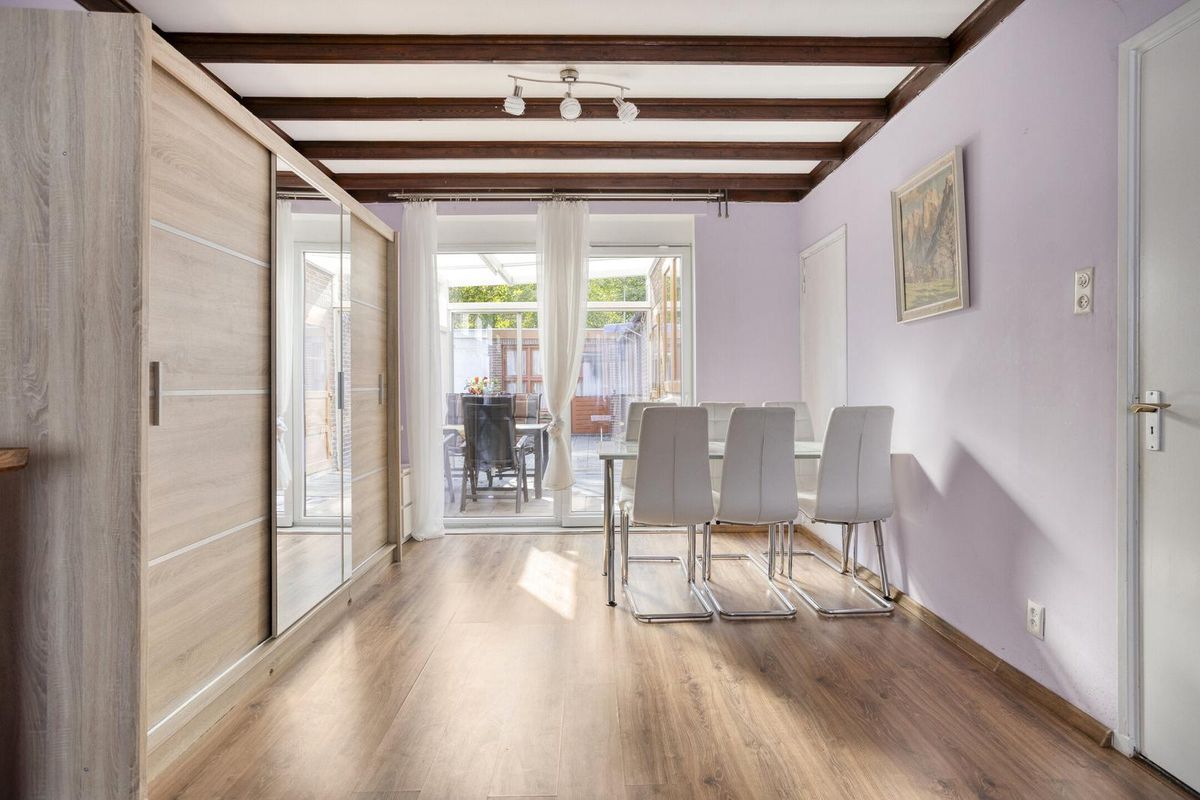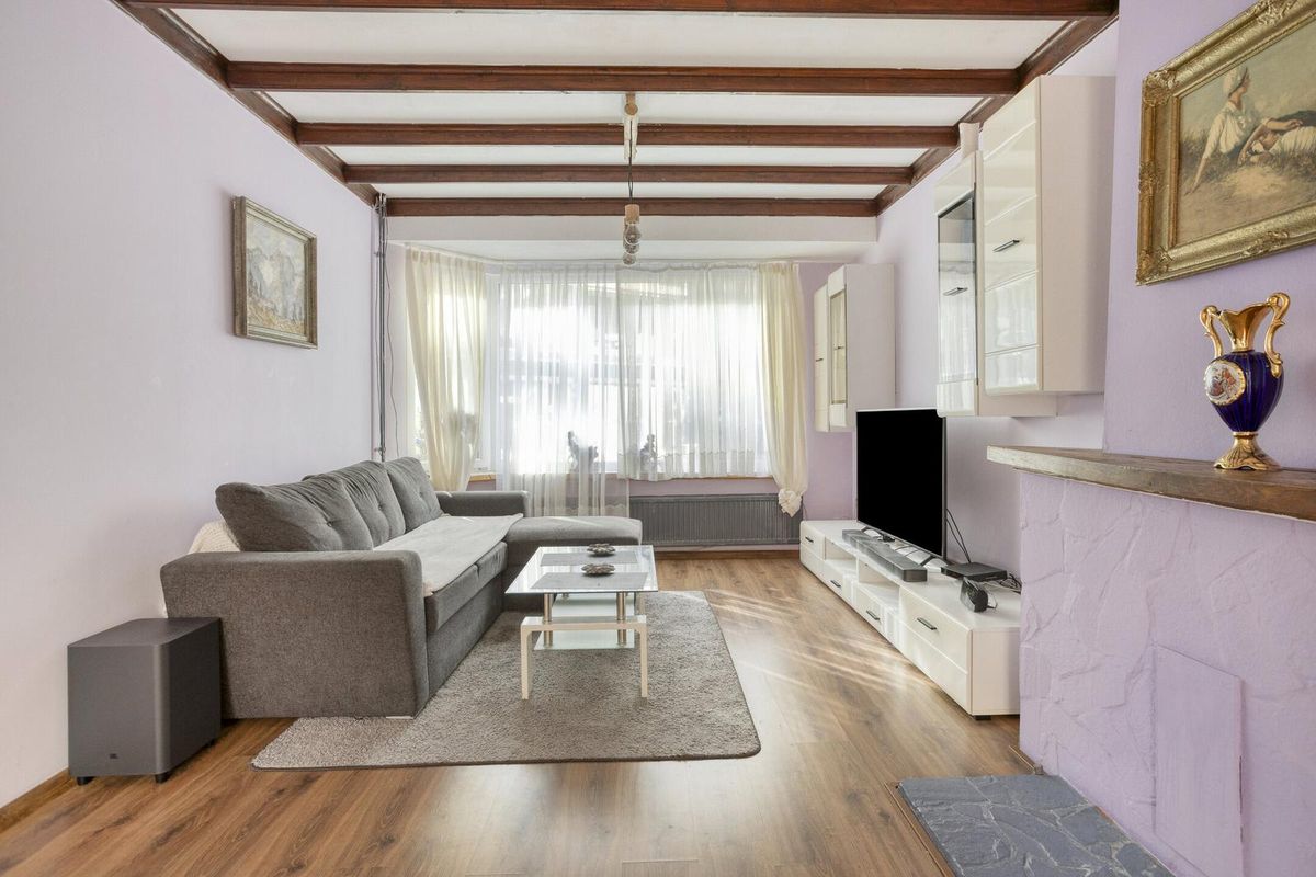 De woonkamer is ruim en licht, met voldoende plek voor een gezellige zithoek en eettafel. Via de woonkamer bereikt u de keuken aan de achterzijde van de woning. De keuken is voorzien van een gaskookplaat, inbouwapparatuur en ruimte voor het plaatsen van een vriezer, wasmachine en/of droger.