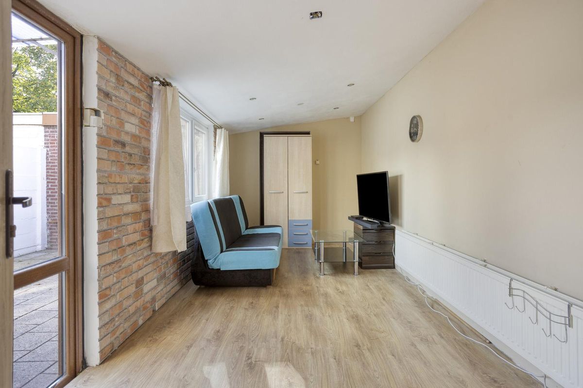 Op de tweede verdieping bevindt zich een kleine keuken met gootsteen en kookplaat, een ruime slaapkamer en extra bergruimte. Deze verdieping biedt veel mogelijkheden, bijvoorbeeld als logeerkamer, tienerkamer of hobbyruimte.