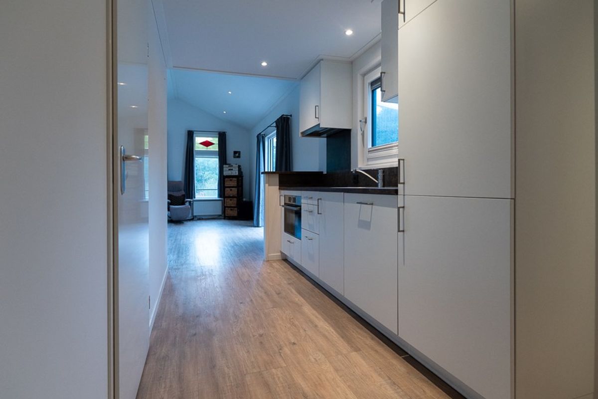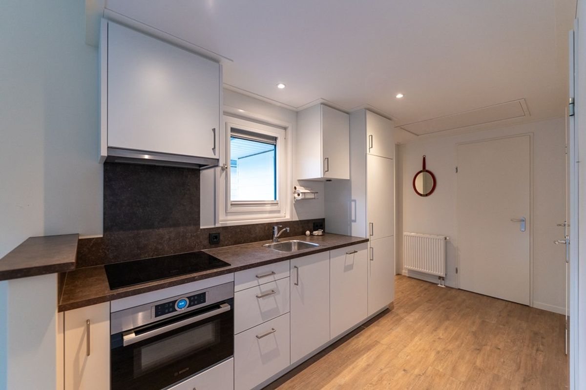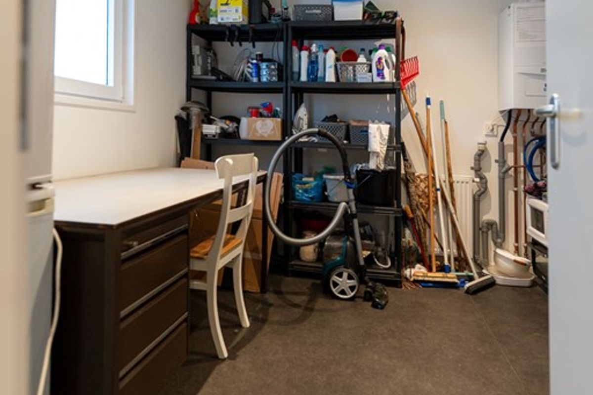 De moderne keuken is voorzien van een vaatwasser, gasfornuis, afzuigkap, combi-oven en koelkast. In de berging vind je bovendien een vriezer en extra bergruimte.