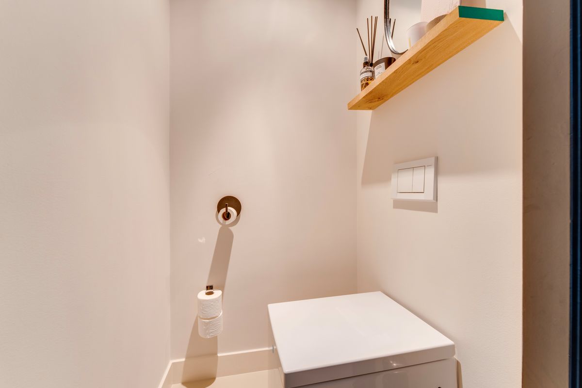 Overloop met separaat modern toiletruimte en bergkast, 3 ruime slaapkamers, waarvan 2 met vaste kastruimte. Complete en luxe badkamer wastafelmeubel, toilet, royale inloopdouche met rain shower en rond gevelraam.