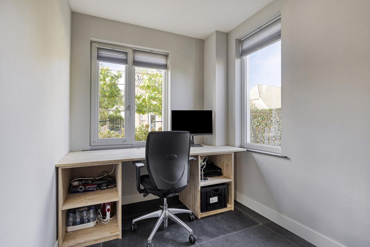 Aan de voorzijde van de woning is een rustige werkkamer gesitueerd – ideaal voor thuiswerken of als hobbyruimte.