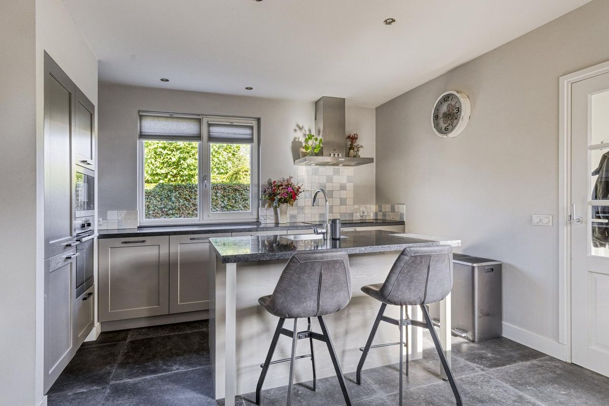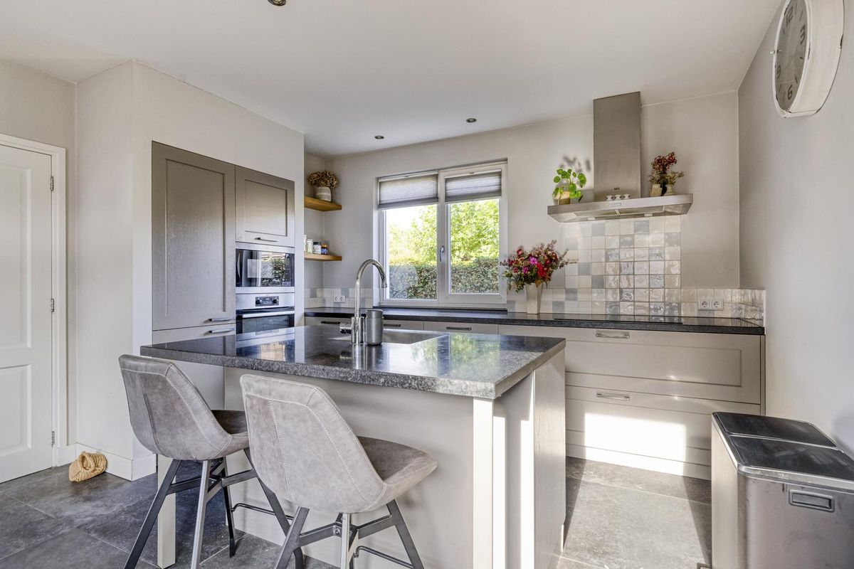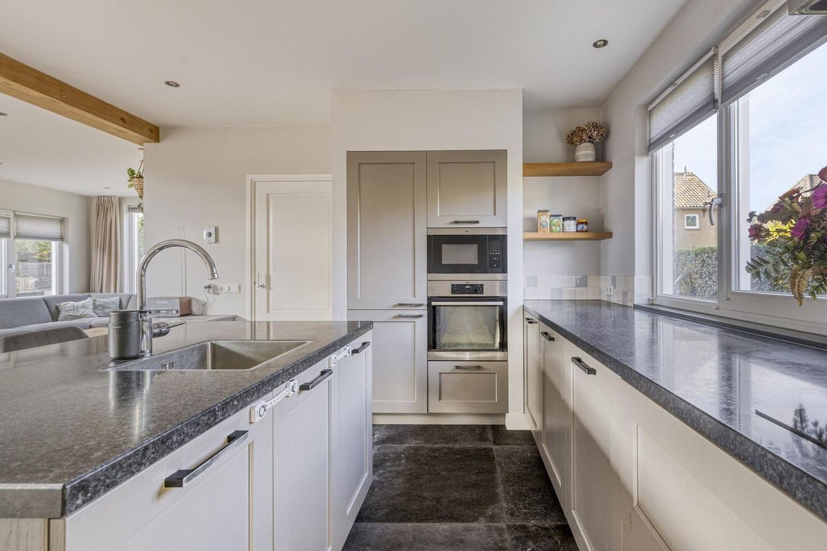 De open keuken in hoekopstelling is voorzien van diverse inbouwapparatuur: een inductiekookplaat, afzuigkap, vaatwasser, koelkast met vriesvak, oven én magnetron. Het granieten werkblad en het spoeleiland met bar maken deze ruimte compleet – perfect voor een snel ontbijt of een gezellige borrel tijdens het koken.