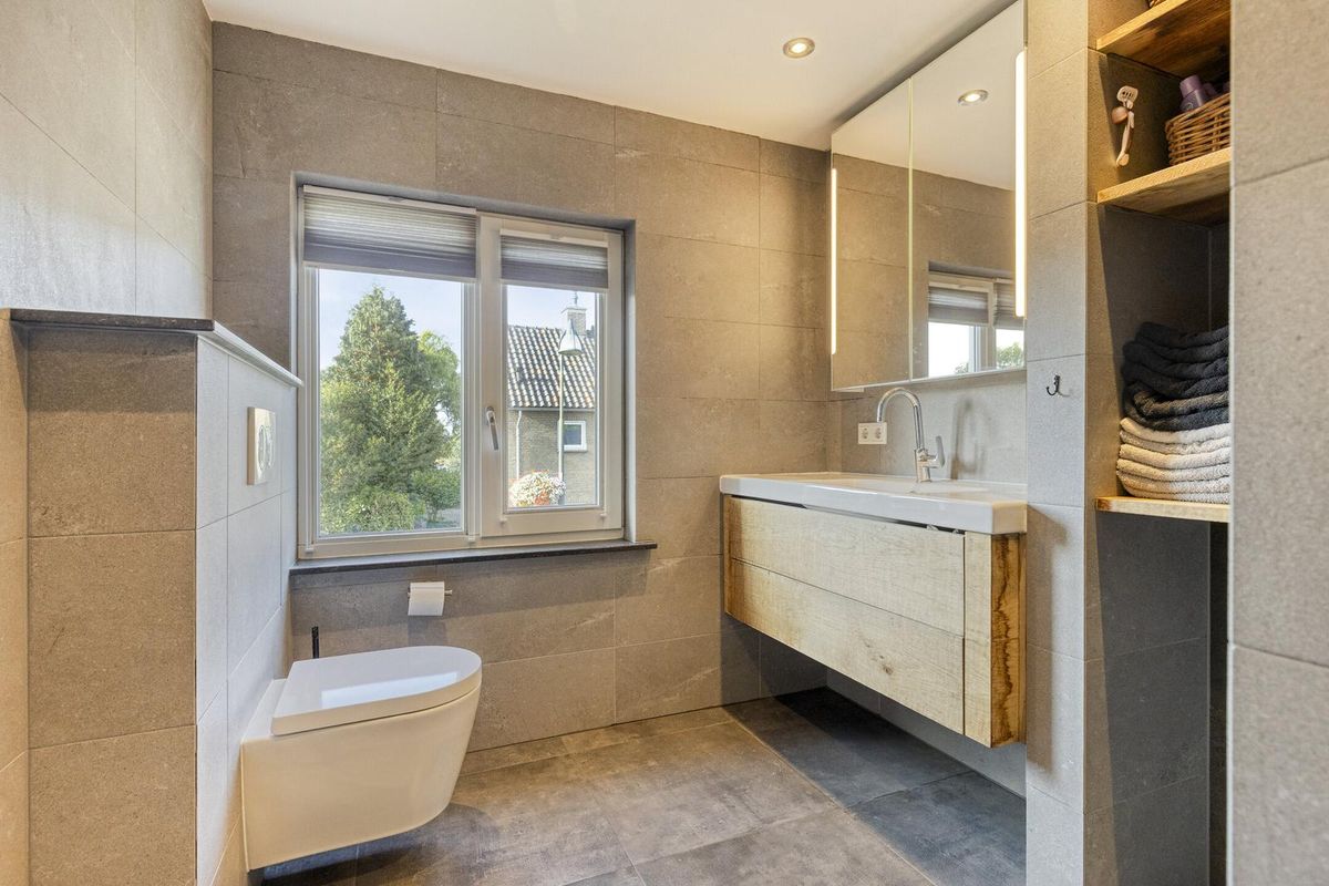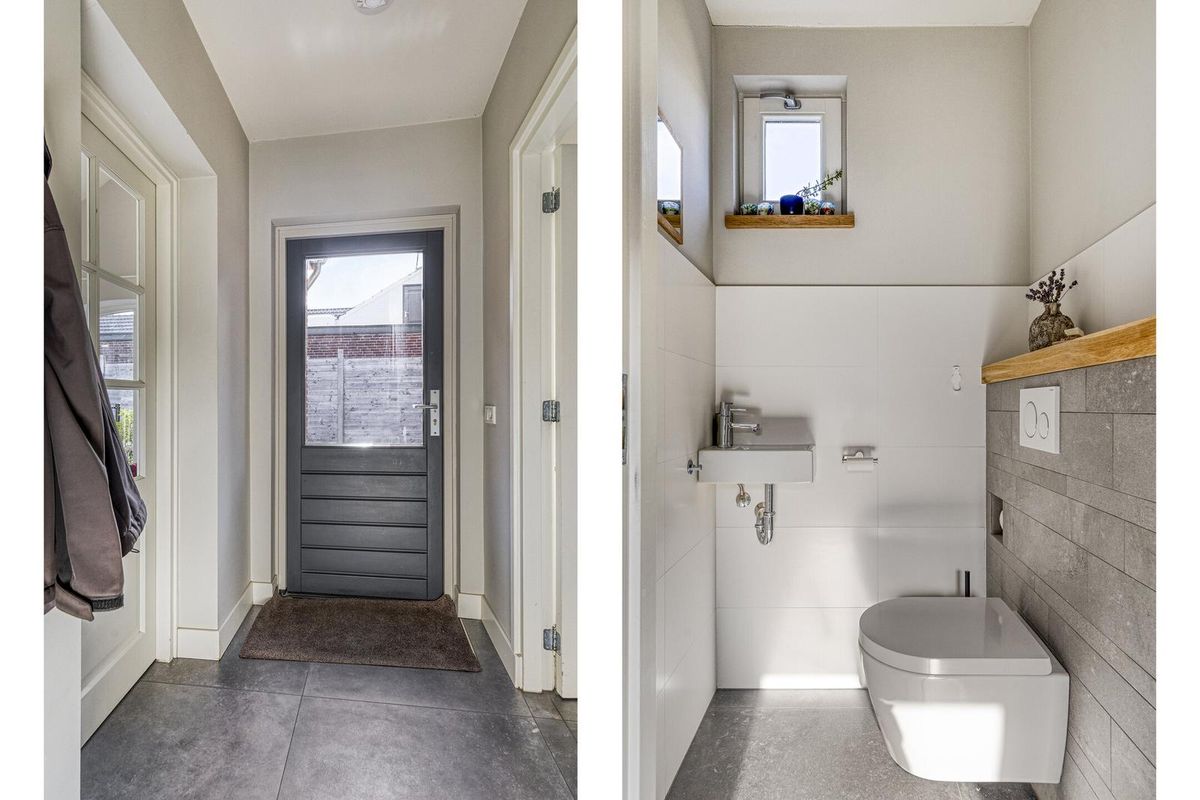 Grenzend aan de keuken bevindt zich de achter entree met toegang tot de tuin, de moderne toiletruimte met wandcloset en fontein, én de multifunctionele tuinkamer.
