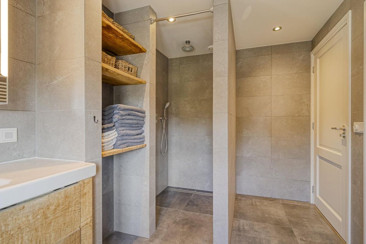 De badkamer is modern met een inloopdouche voorzien van hand- en regendouche, een wastafelmeubel, een wandcloset, vloerverwarming, een designradiator én... een ingebouwde radio! Begin je dag met je favoriete muziek terwijl je geniet van een warme douche – luxe met een glimlach.