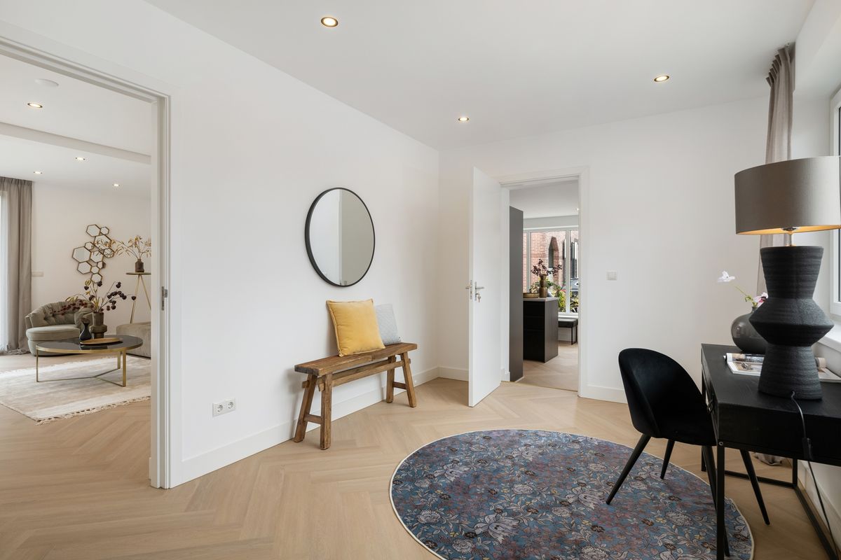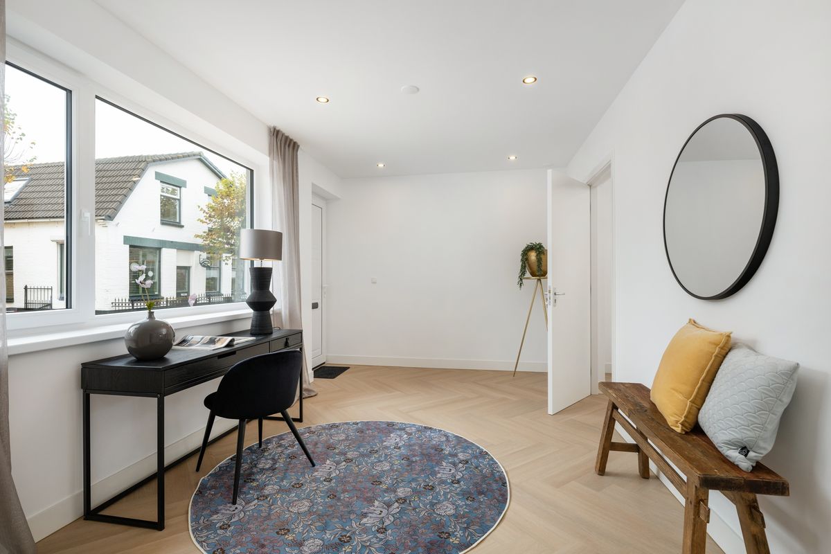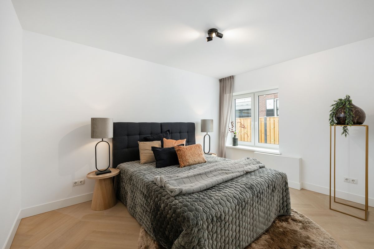 De afwerking is hoogwaardig, met een visgraat PVC-vloer (door de gehele woning), hoge plinten en een strak gestuukte wandafwerking.