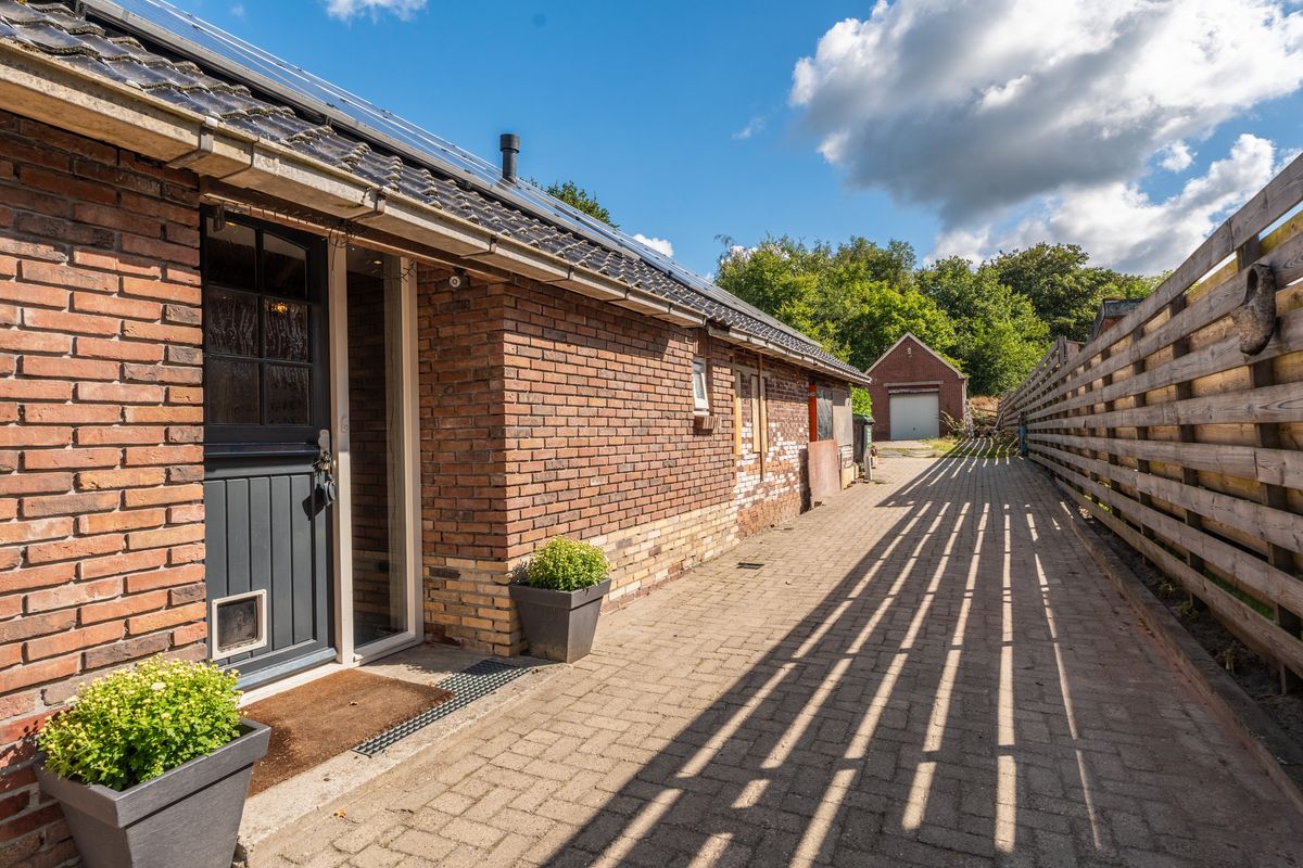 De voortuin is aangelegd als siertuin. Langs de woning bevindt zich een ruime oprit met voldoende parkeergelegenheid voor meerdere auto’s, die leidt naar de vrijstaande stenen garage.