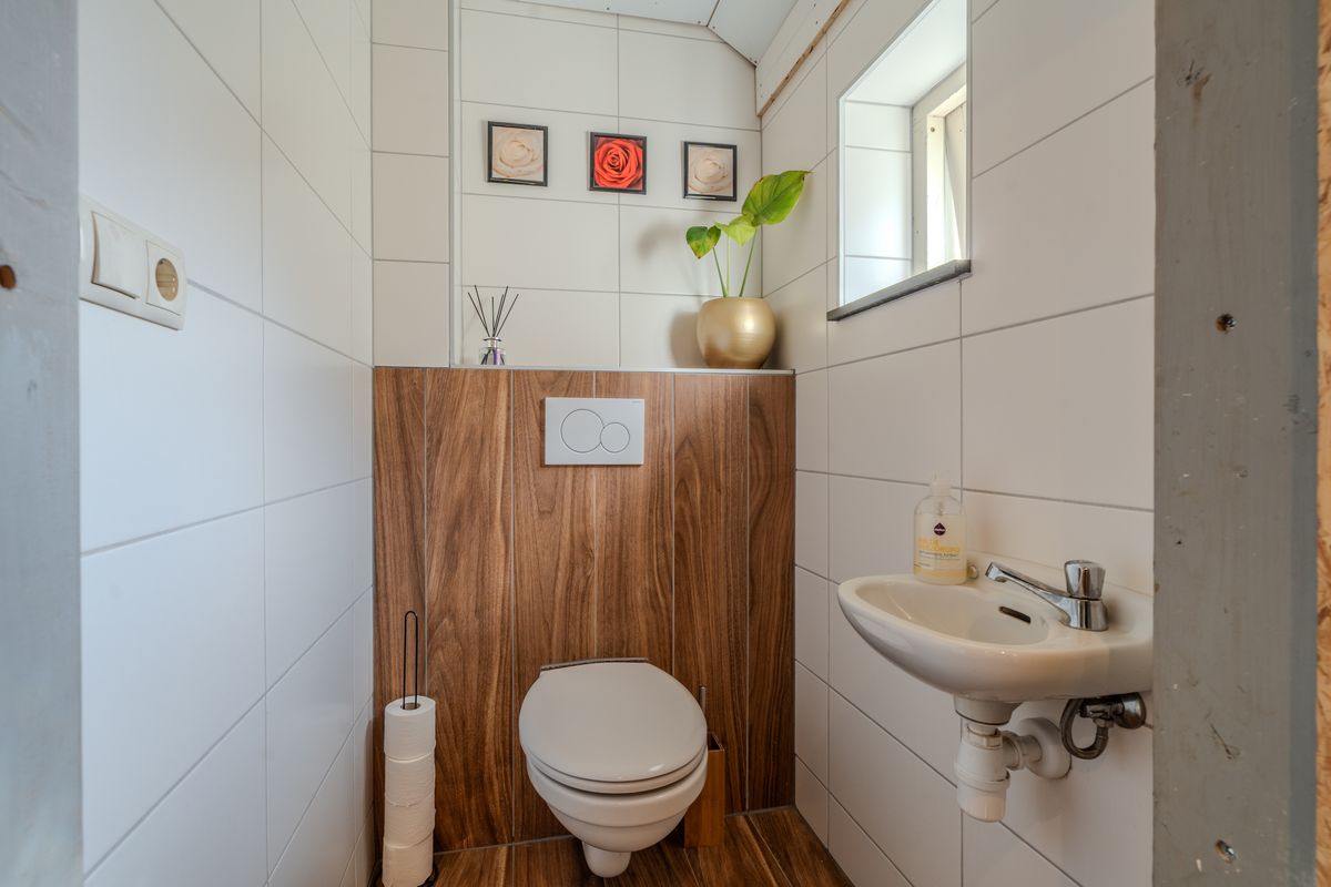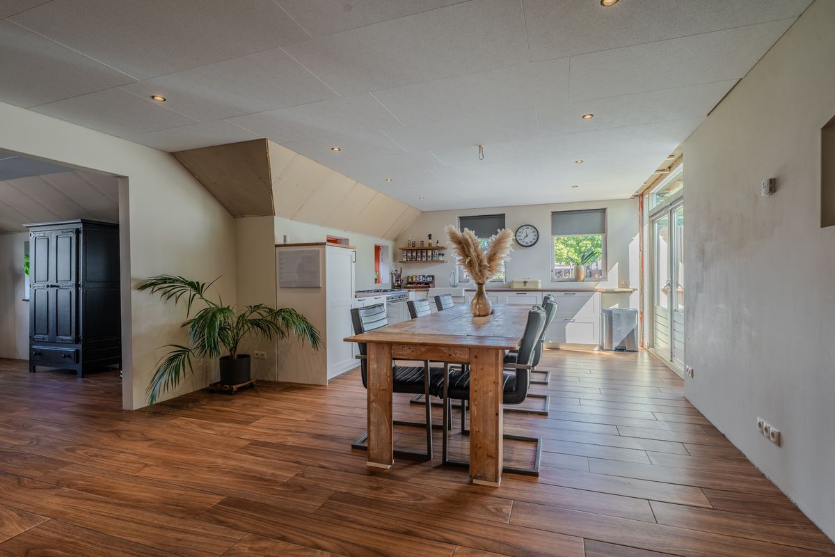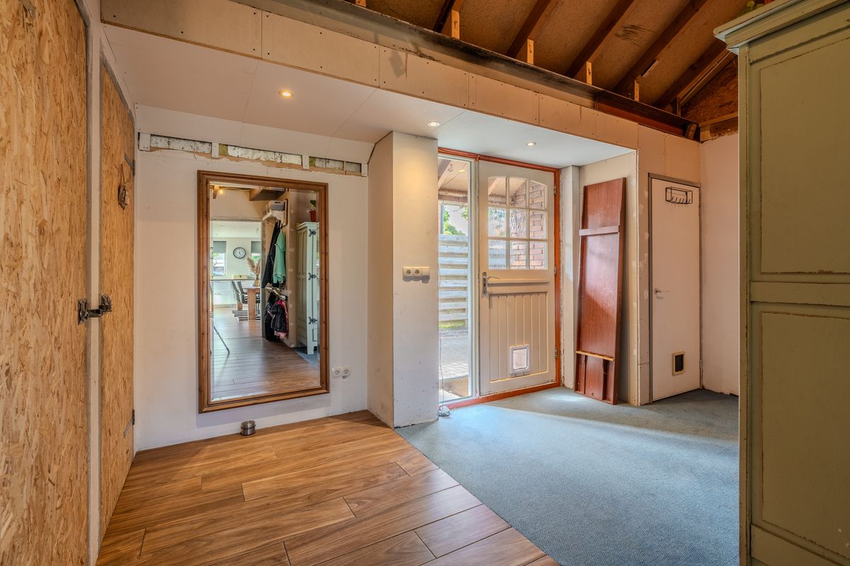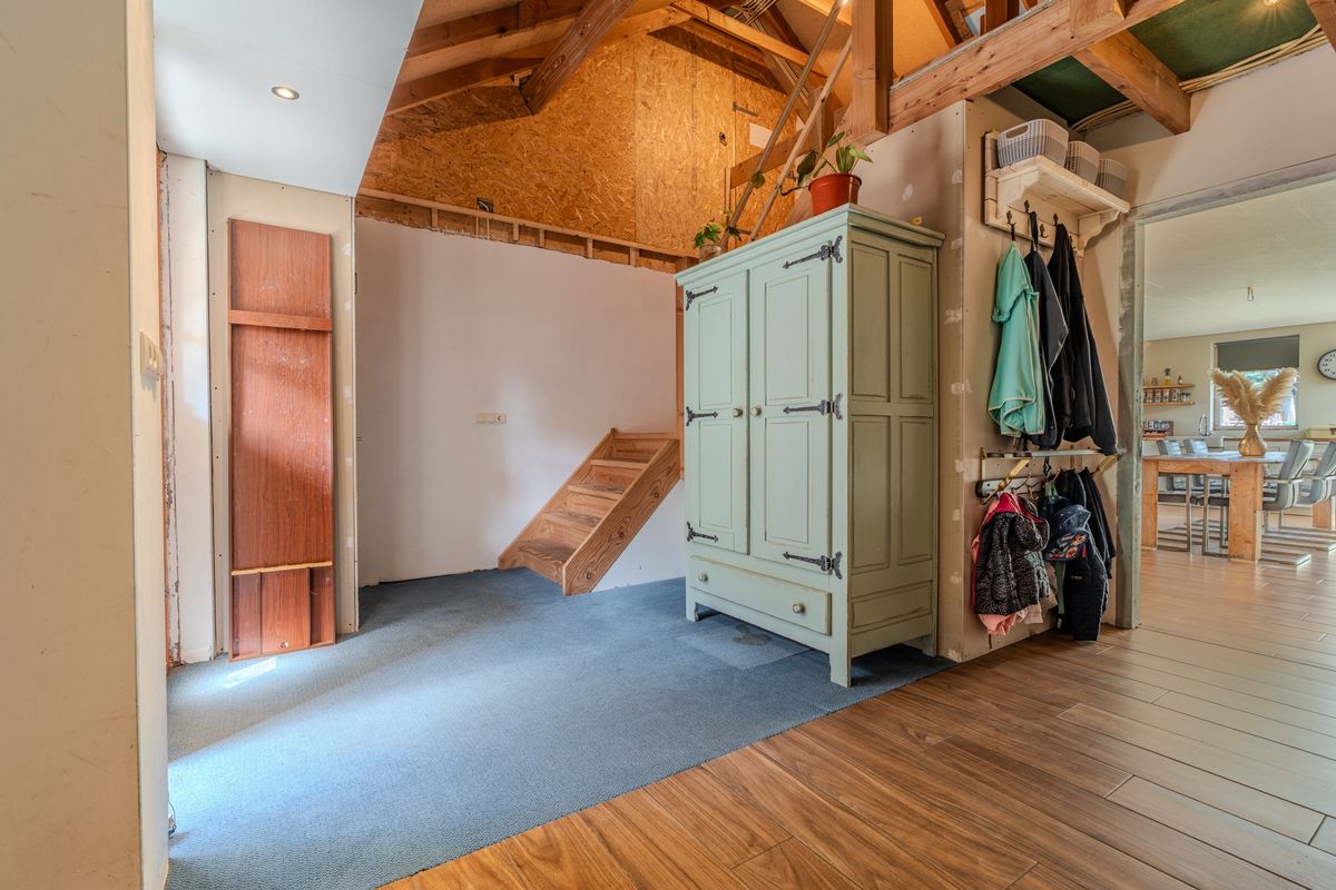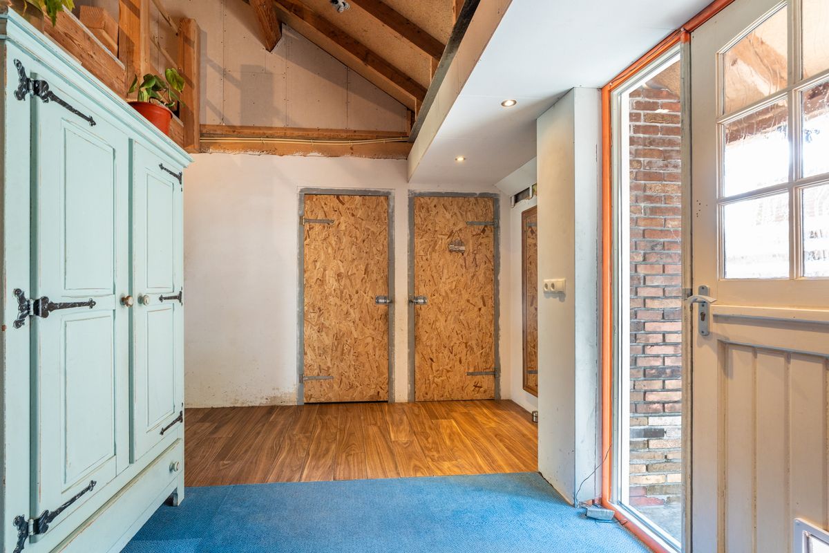 Hal/entree met trapopgang en meterkast; toiletruimte met fonteintje; badkamer met inloopdouche en badkamermeubel (ca 2.5m²) Ruime inpandige schuurruimte van maar liefst (ca 69,2m²) geschikt om extra slaapkamers en werkkamer te realiseren; Royale woonkeuken (ca 31m²) met inbouwkeuken in hoekopstelling met diverse apparatuur. (o.a. 5 pits gasfornuis met oven, vaatwasser en koelkast. Kelder (ca.9.3m² Ruime sfeervolle woonkamer; slaapkamer (ca 6m²)