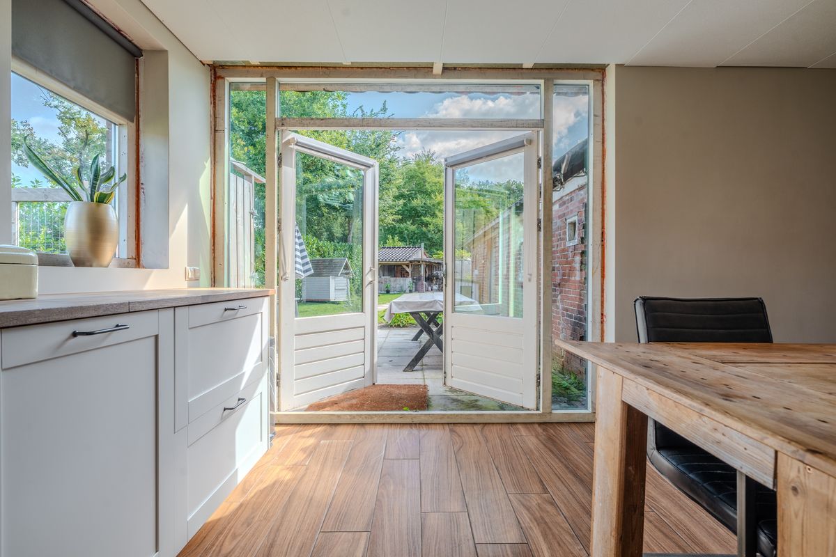 De besloten achtertuin is fraai ingericht met meerdere terrassen, een overkapping, diverse sierbeplanting en een gazon. Bovendien is de tuin via een achterom bereikbaar.