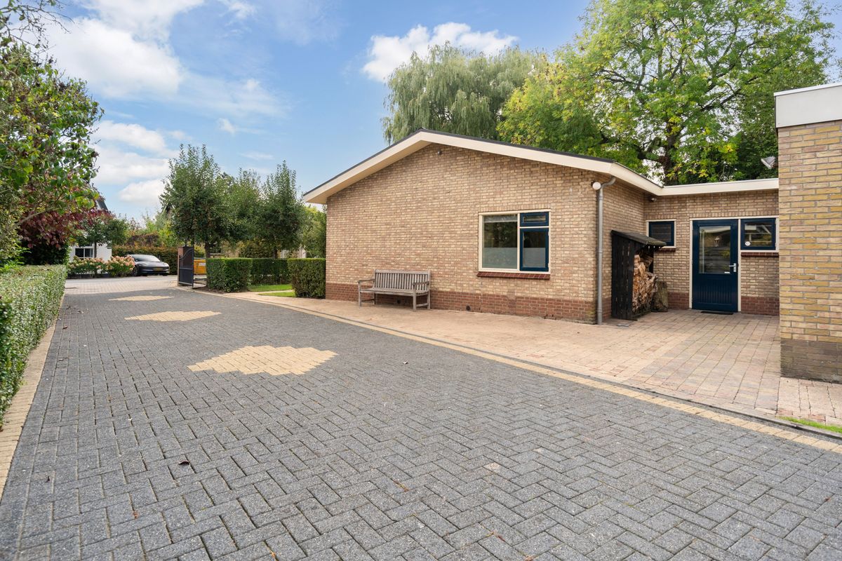 Rondom de woning ligt de zeer royale, keurig onderhouden en gevarieerd aangelegde tuin met sierbestrating, gazons, enkele bomen en volwassen struiken. De extra brede en zwaar aangelegde oprit is oprit is volledig bestraat voor het parkeren van meerdere voertuigen.