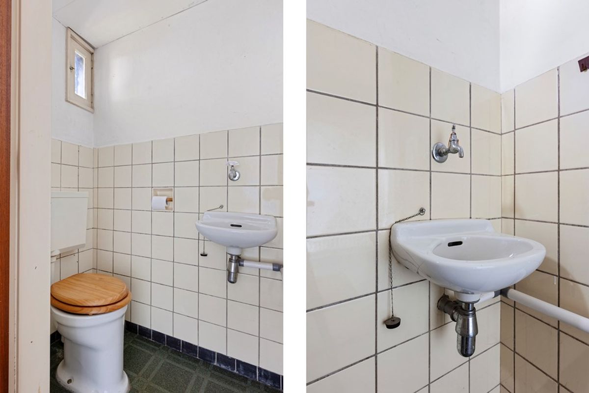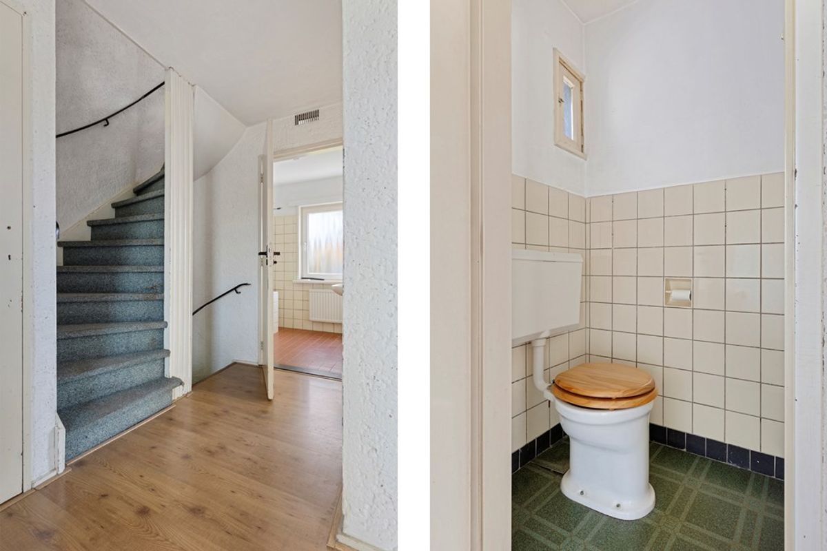 Upon entering the home, you are welcomed by a spacious entrance hall featuring a meter cupboard, a neatly finished guest toilet with washbasin, and access to both the basement and the upper floors.