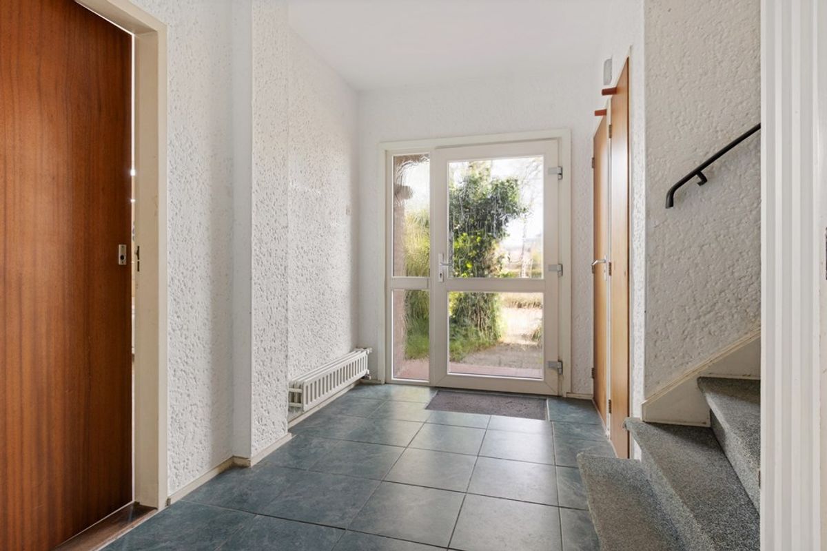 Achter de voordeur vindt u de entreehal met meterkast, een keurig betegeld toilet met fonteintje en de trapopgang naar de eerste verdieping en de kelder. De hal biedt toegang tot de woonkamer.