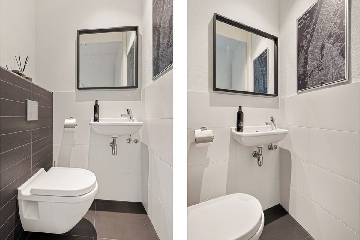 Bij binnenkomst in het appartement komt u in de entreehal, die toegang biedt tot alle vertrekken. Hier bevindt zich tevens de meterkast en een separate toiletruimte, voorzien van een modern zwevend toilet en een fonteintje.