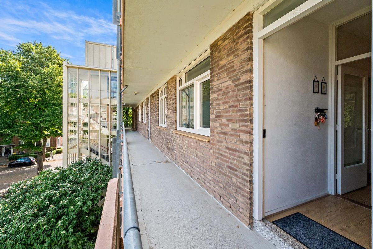 Via het afgesloten portiek met intercominstallatie bereik je de woning op de derde verdieping (zowel met lift als trap bereikbaar). Tochtportaal met meterkast en doorloop naar een ruime vierkante hal met toegang tot de woonkamer aan de voorzijde. Vanaf de woonkamer toegang tot een zonnig balkon op het Zuidwesten met middag- en avondzon. 1 ruime slaapkamer bevindt zich ook aan de voorzijde en heeft ook toegang naar het balkon. De badkamer is compact maar efficiënt ingericht met een douche, vaste wastafel en opstelplaats van wasmachine. De moderne keuken alsmede de tweede slaapkamer bevinden zich aan de galerijzijde. Vanuit de hal is het separate toilet bereikbaar. Op de begane grond bevindt zich een praktische inpandige berging, ideaal voor fietsen of seizoensspullen.