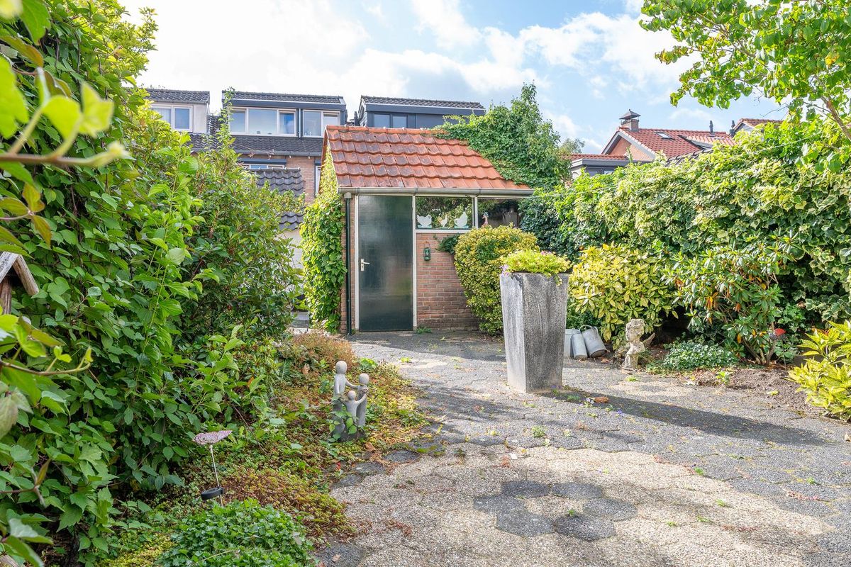 - achtertuin met schuur en achterom
