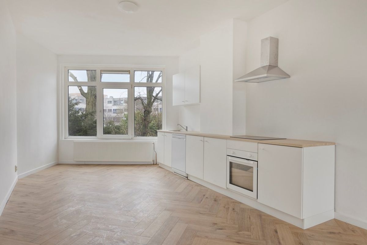 De doorzonwoonkamer met open keuken vormt het hart van het appartement. Dankzij de grote raampartijen aan zowel de voor- als achterzijde geniet je hier van een fijne lichtinval en een ruimtelijk gevoel. De open keuken is praktisch opgesteld en sluit naadloos aan op de woonkamer, waardoor een comfortabele leefruimte ontstaat waar koken en ontspannen samenkomen.