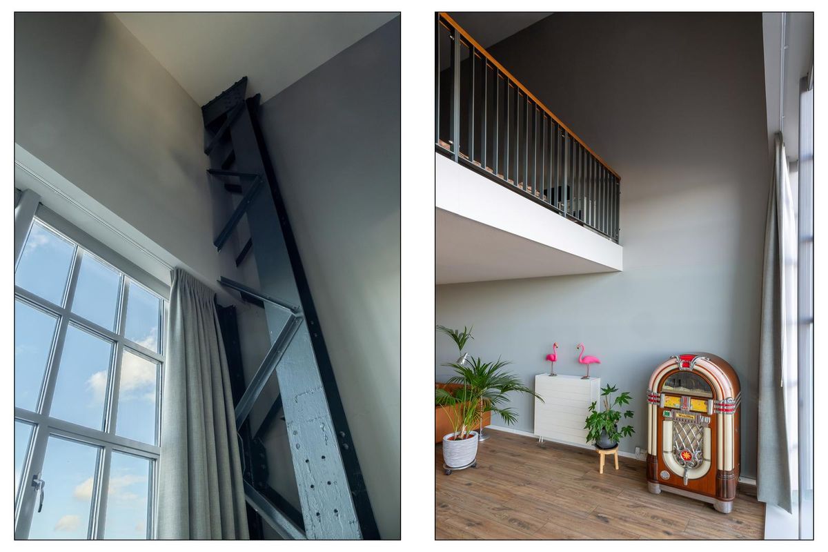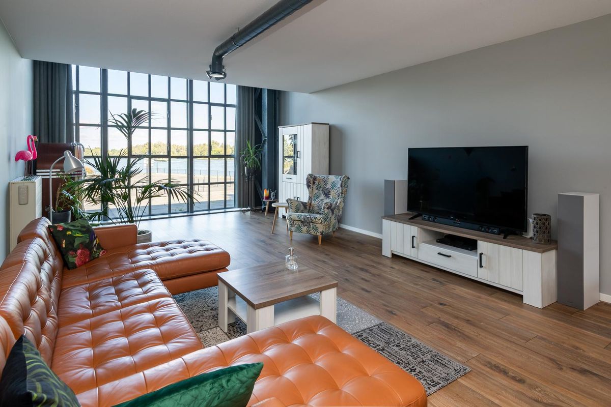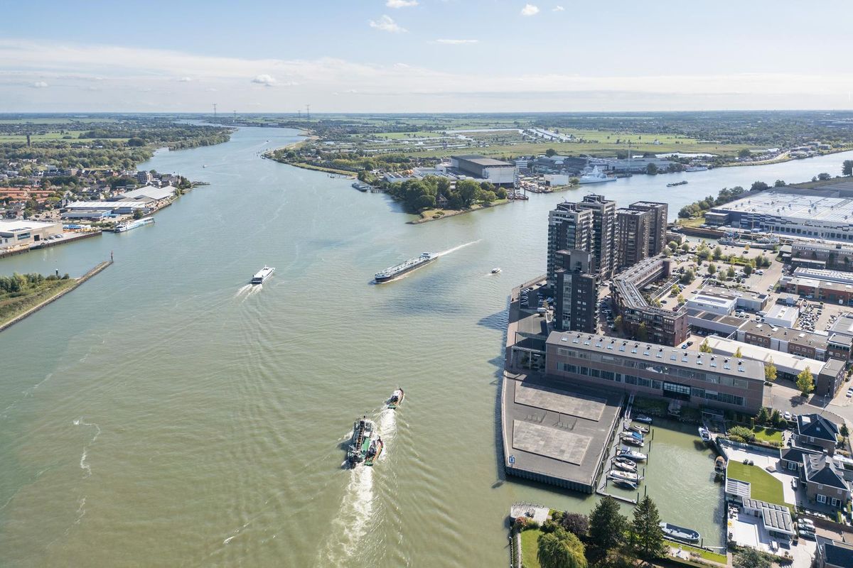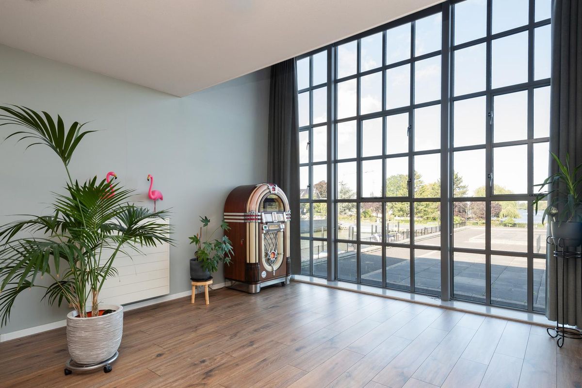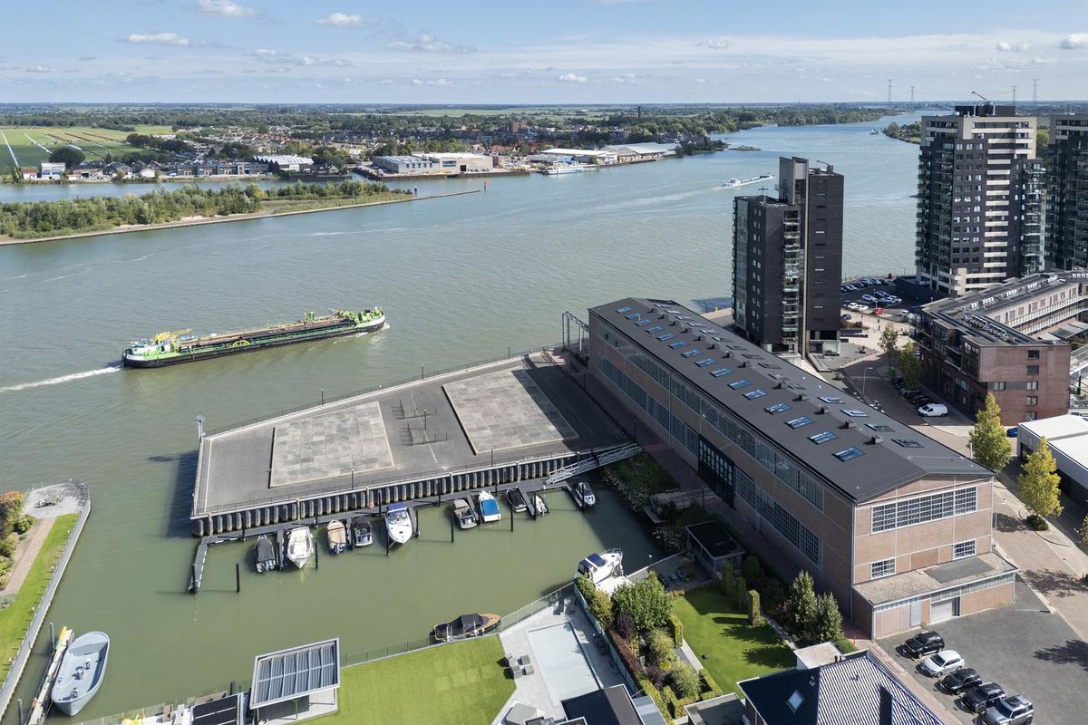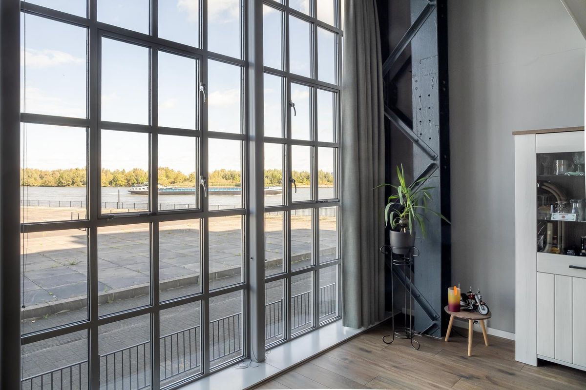 Deze markante loftwoning is speels ingedeeld (splitlevel) verdeeld over 2 woonlagen (1e en 2e verdieping), niveauverschil over een lengte van ca. 20 meter en een vide van bijna 7 meter hoogte! Het gebouw grenst direct aan een privéhaven. De riante living is voorzien van grote raampartijen met vlakverdeling, een fraaie vide van circa 7 meter, spanten en een centraal gelegen luxe eilandkeuken. De grote glaspartijen tot aan de vloer bieden naast een prettige lichtinval een mooi vergezicht over de rivier!