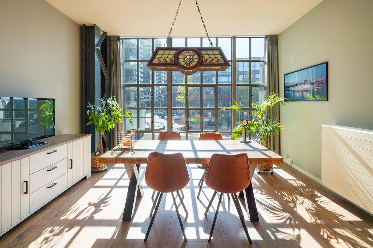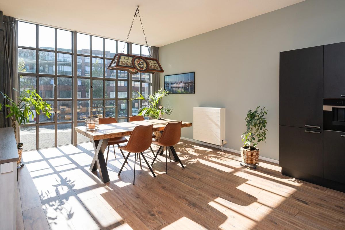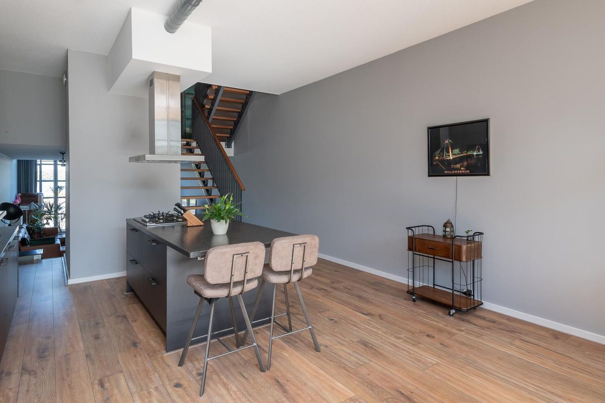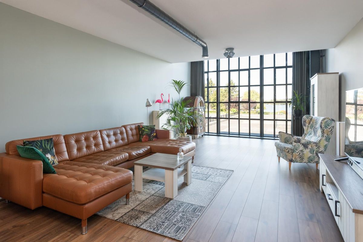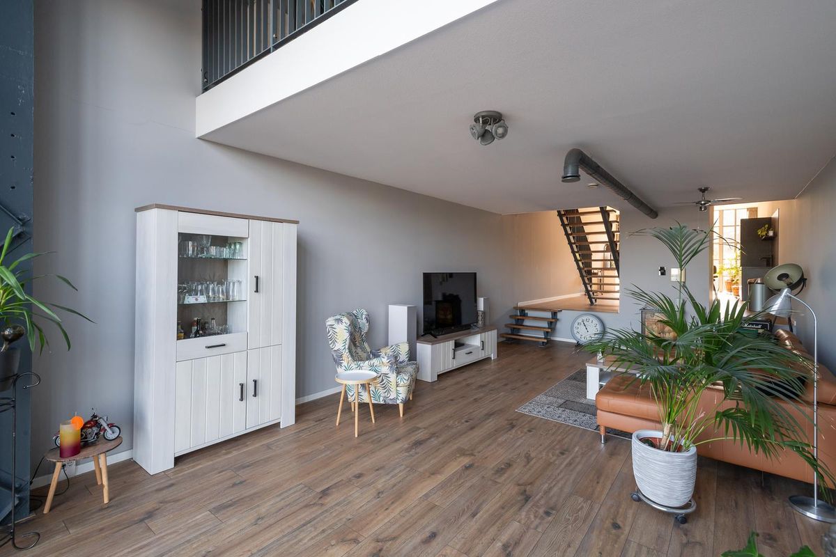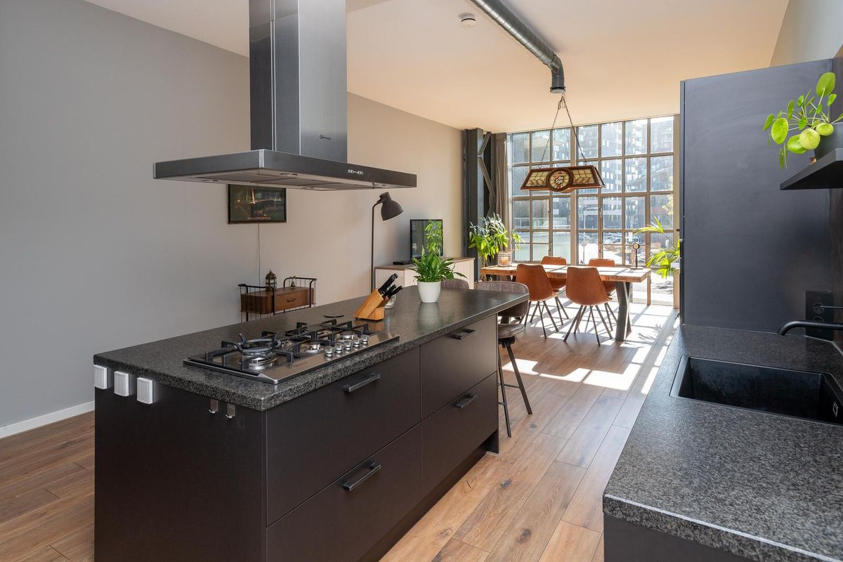Deze markante loftwoning is speels ingedeeld (splitlevel) verdeeld over 2 woonlagen (1e en 2e verdieping), niveauverschil over een lengte van ca. 20 meter en een vide van bijna 7 meter hoogte! Het gebouw grenst direct aan een privéhaven. De riante living is voorzien van grote raampartijen met vlakverdeling, een fraaie vide van circa 7 meter, spanten en een centraal gelegen luxe eilandkeuken. De grote glaspartijen tot aan de vloer bieden naast een prettige lichtinval een mooi vergezicht over de rivier!