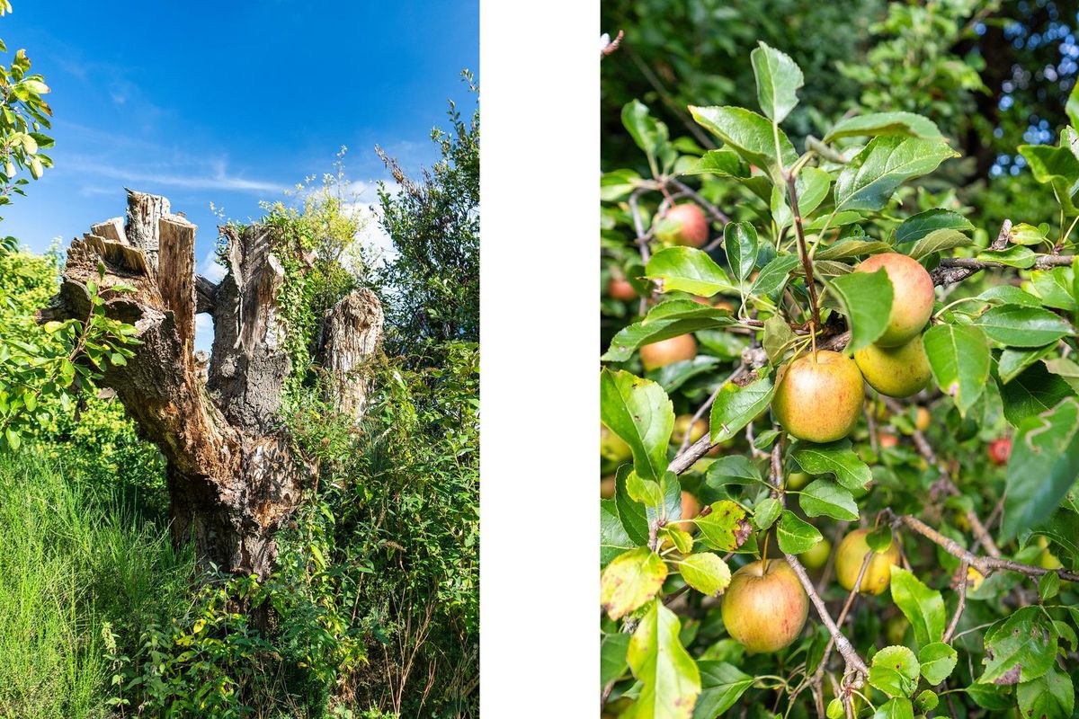 De diepe achtertuin heeft een bosrijk en groen karakter, met volwassen beplanting en veel privacy.