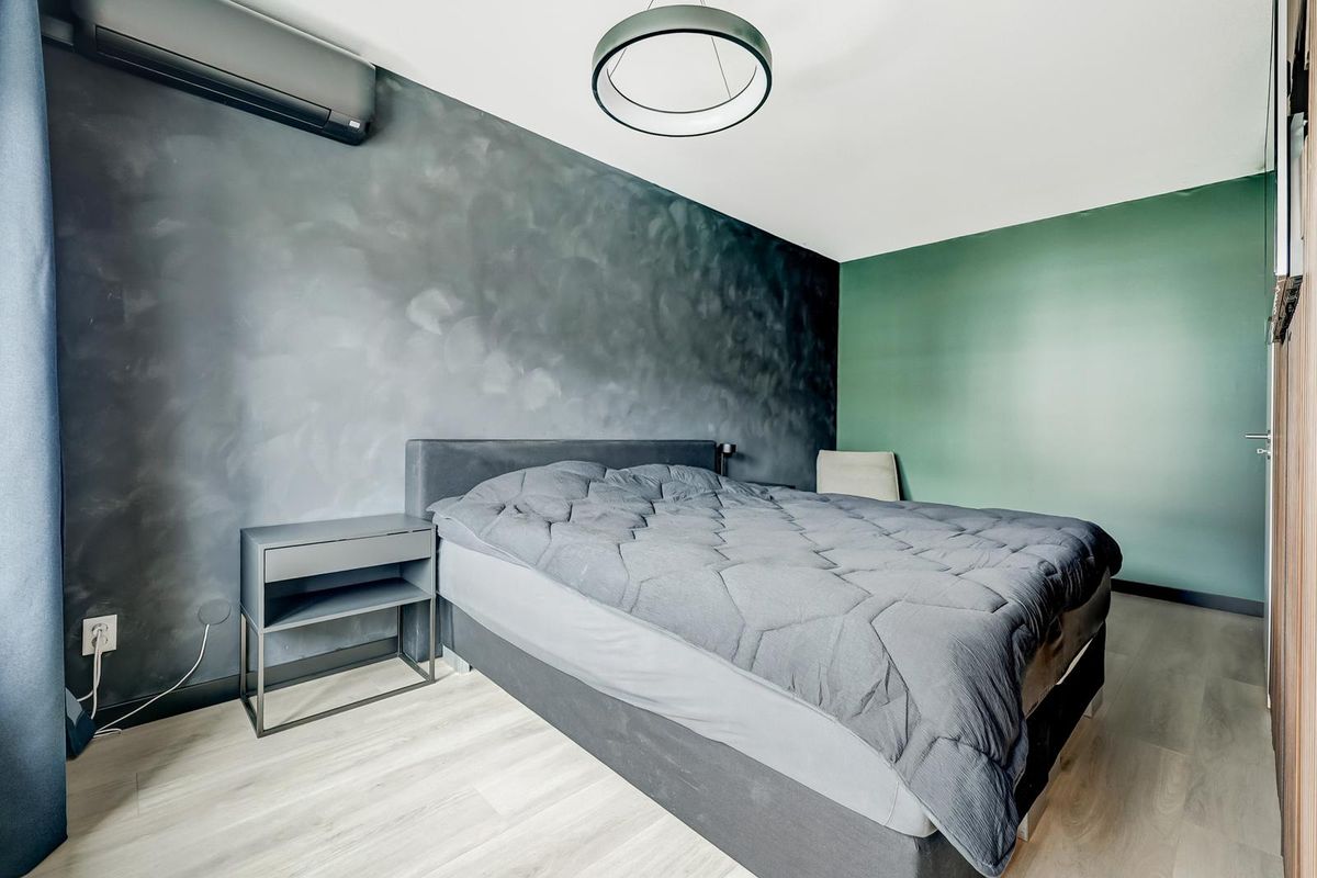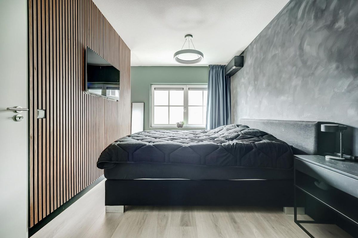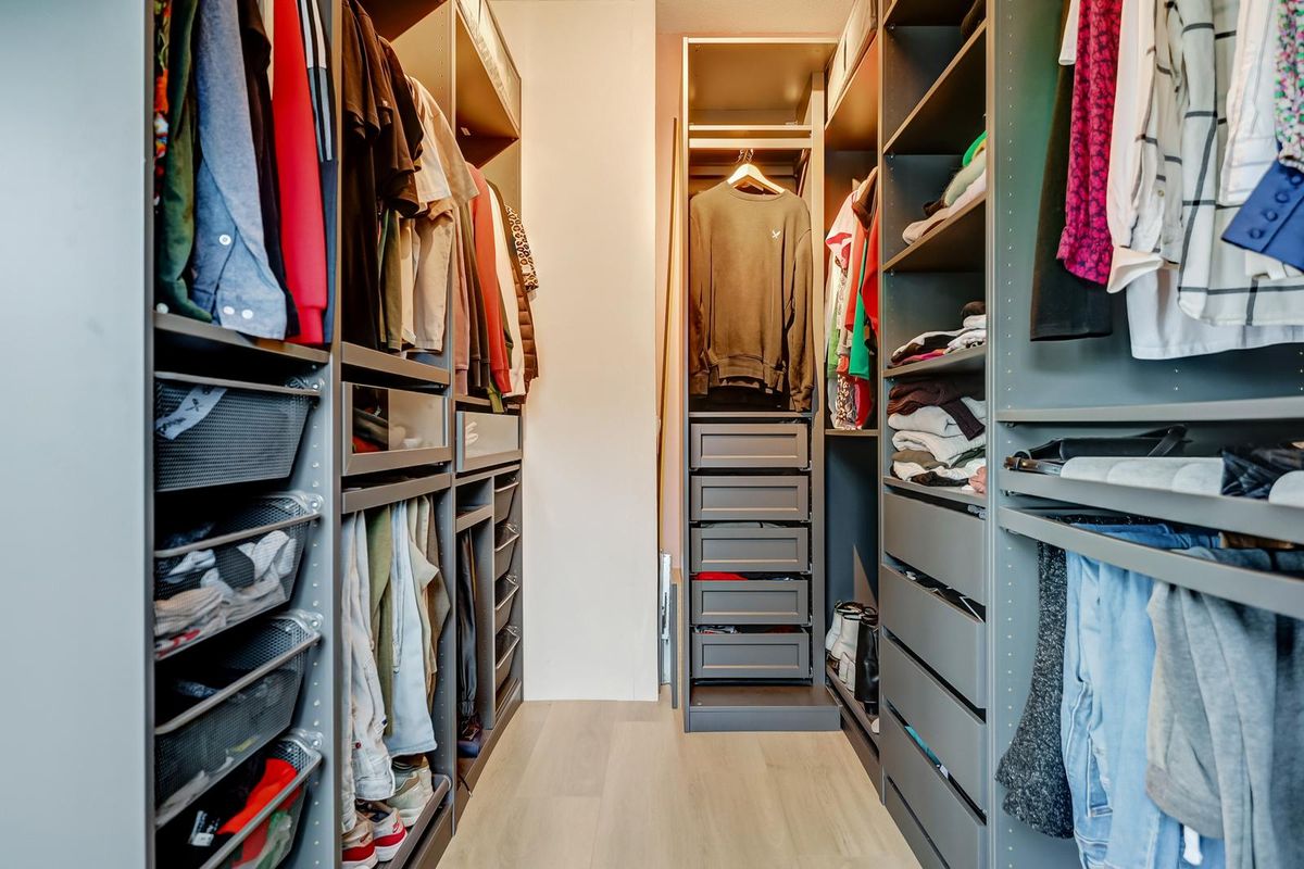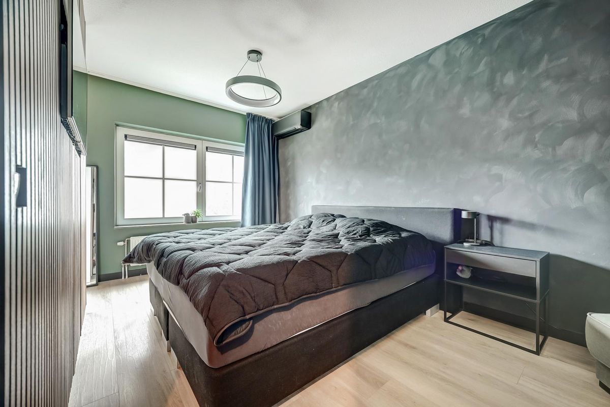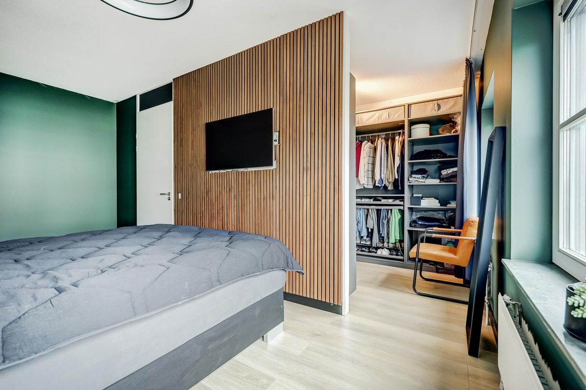 Op de eerste verdieping beschikt men over twee, voormalig drie ruime slaapkamers. De derde slaapkamer is momenteel in gebruik als kledingkamer en bereikbaar vanuit de grootste slaapkamer aan de achterzijde van de woning. Het is mogelijk om de inloopkast weer als slaapkamer te maken. In de ouderslaapkamer is een airco aanwezig en de wanden in deze slaapkamer zijn deels afgewerkt met Aku-panelen en deels met renovlies. De vloer is afgewerkt met een laminaat. De tweede slaapkamer ligt aan de voorzijde en is ook voorzien van een airco.
