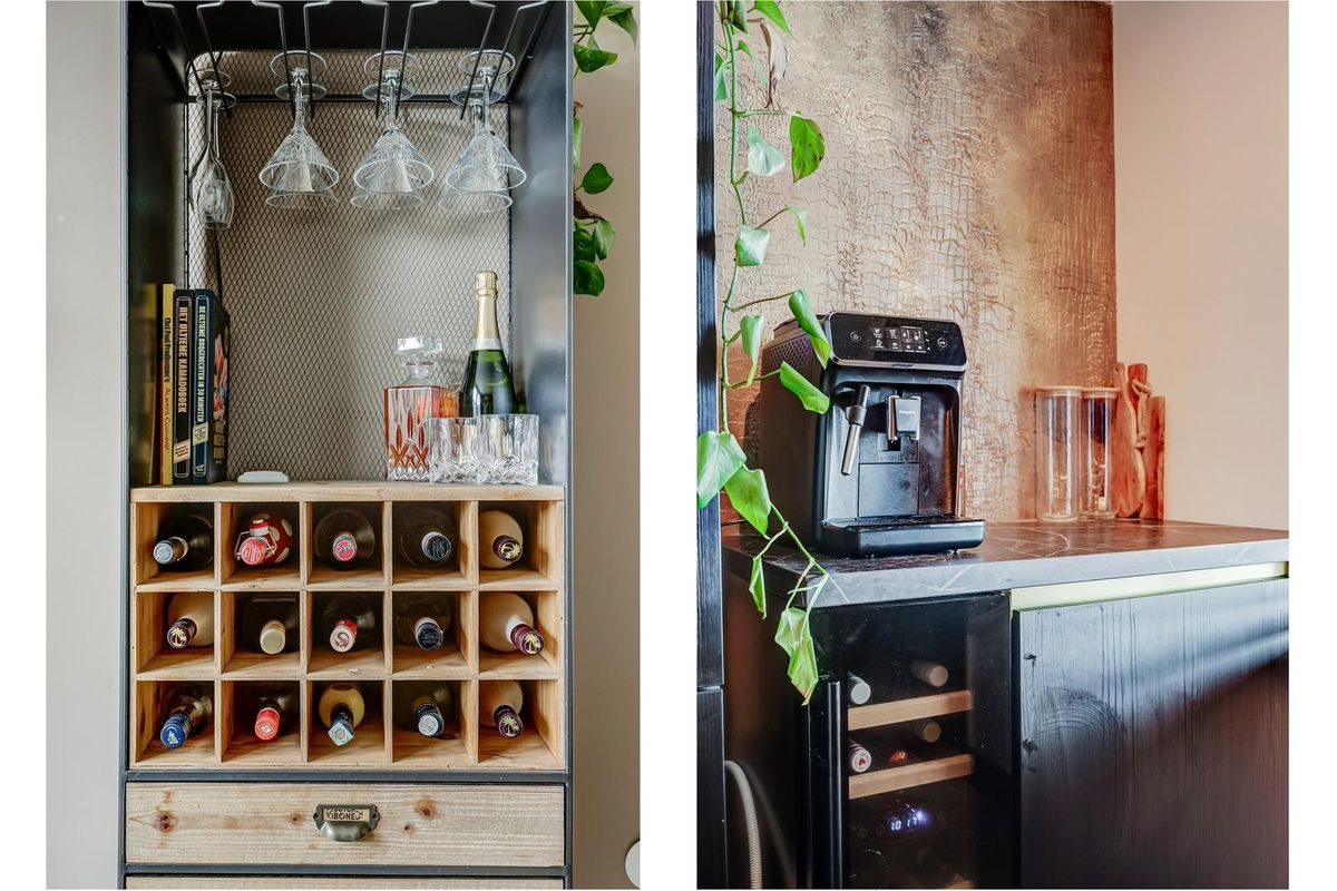 De keuken is voorzien van alle denkbare voorzieningen, te weten: een wijnkoeler, Quooker, Bora inductiekookplaat met geïntegreerde afzuiging, combi-oven, oven, koel-/vriescombinatie en een vaatwasser. Een deel van de inbouwapparatuur is overgenomen uit de oorspronkelijke keuken (2018).