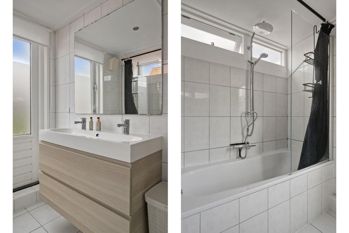 Op de eerste verdieping vind je drie slaapkamers, waarvan twee met vaste kasten. De badkamer is ruim en voorzien van ligbad, douche, wastafel en toilet. Er is bovendien een mooie mogelijkheid om een dakterras te maken.