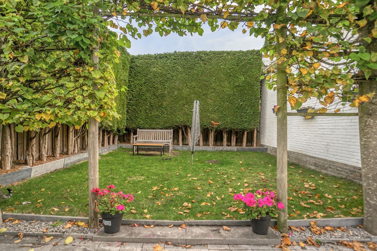 De achtertuin is een heerlijk plekje, beschut en privé met een fijn terras en groene beplanting. Je kunt er via een eigen zijgang met berging komen, handig voor fietsen of tuingereedschap.