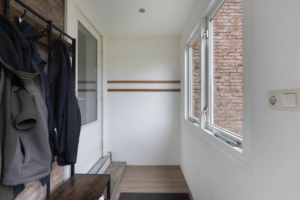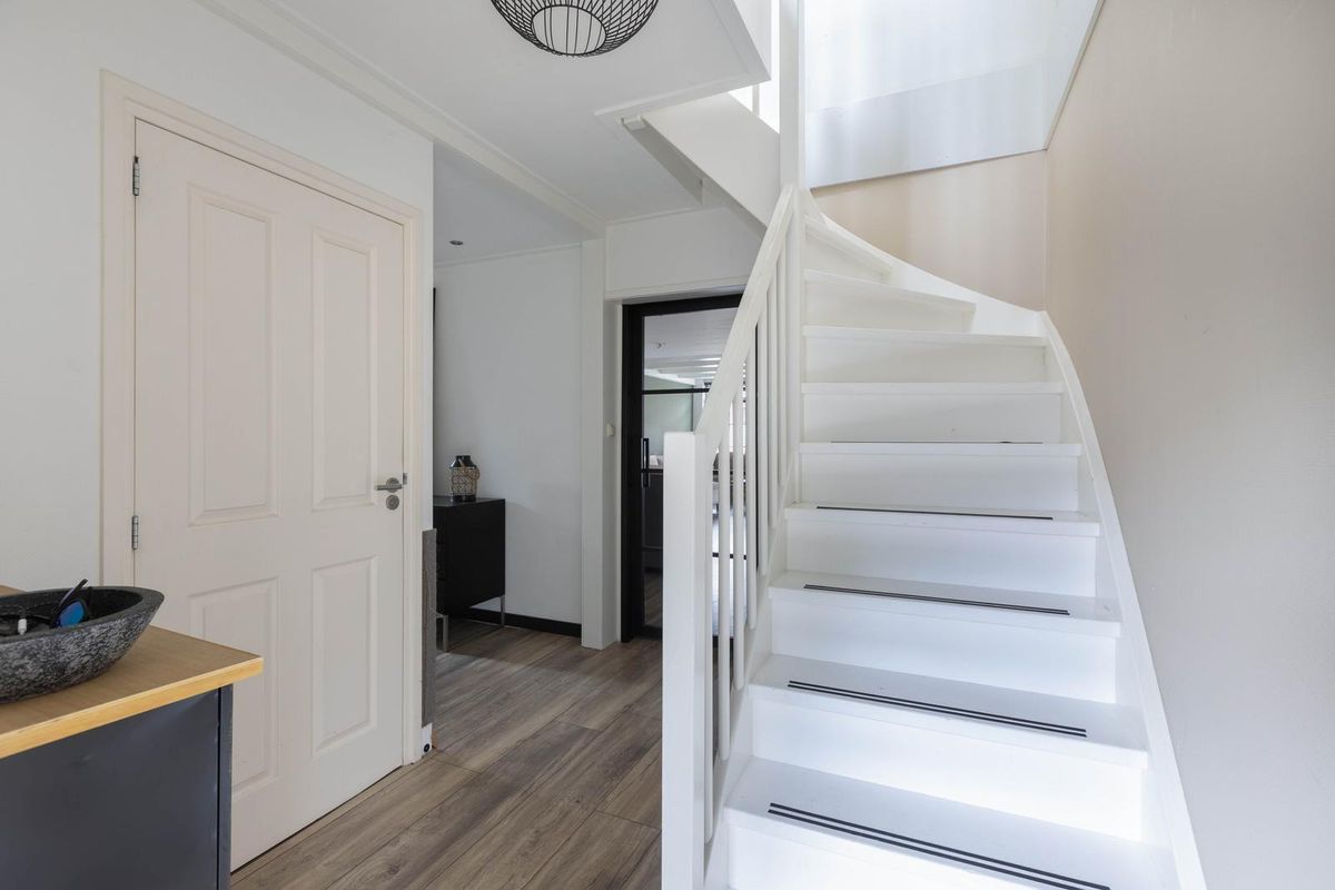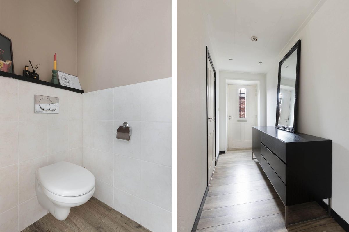 De woning is gemoderniseerd met behoud van karakter en biedt volop ruimte en comfort. Via de zijentree kom je in de hal met toegang tot de technische ruimte/bijkeuken, waar zich de witgoedaansluitingen, mechanische ventilatie en de cv-installatie bevinden. Verder zijn er een garderoberuimte, een modern toilet met fontein en toegang tot het tochtportaal richting de achtertuin. Onder de trap is een handige schoenenkast op maat gerealiseerd.