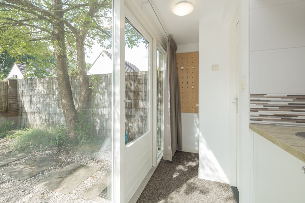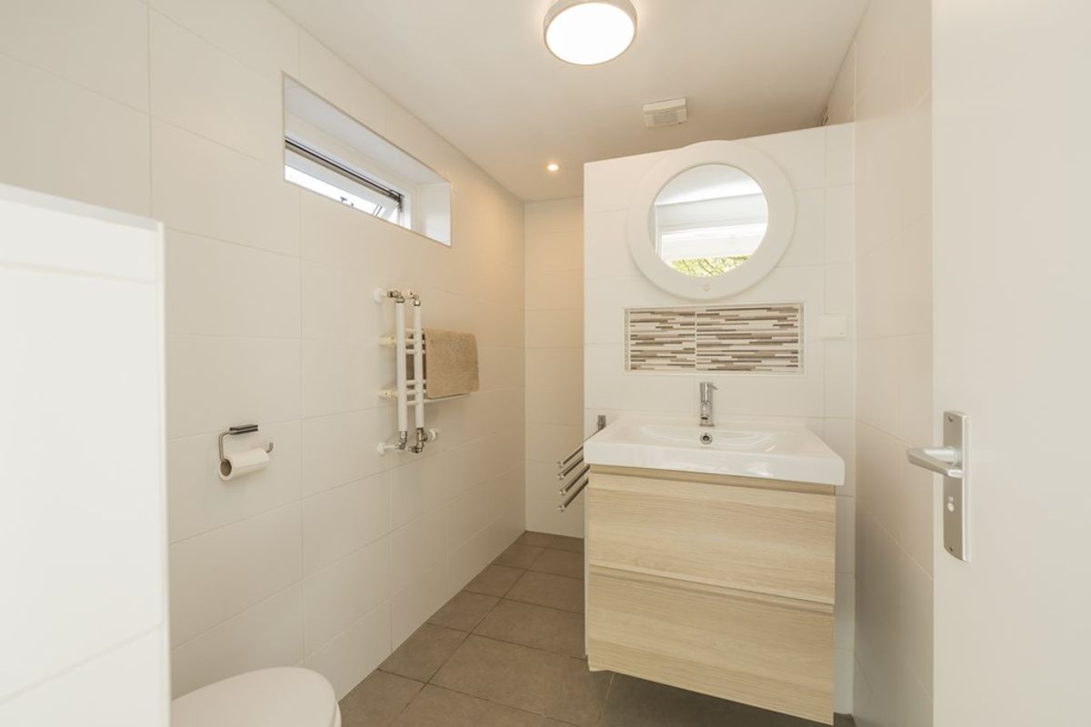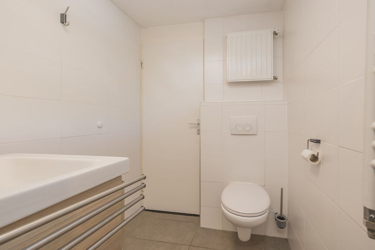 Entree, hal met de meterkast en de toegang naar de volledig en smaakvol betegelde badkamer met een wandcloset, mechanische ventilatie, een wastafelmeubel en een inloopdouche met een heerlijke regendouche. De fraaie en in lichte kleuren uitgevoerde keuken is voorzien van sfeerverlichting en diverse inbouwapparatuur zoals inductiekookplaat met afzuigkap, een vaatwasser, een koelkast, een combimagnetron en een wasmachine. De woonkamer is aangenaam licht door de grote raampartijen en heeft een bio-ethanol haard en een lichte laminaatvloer.