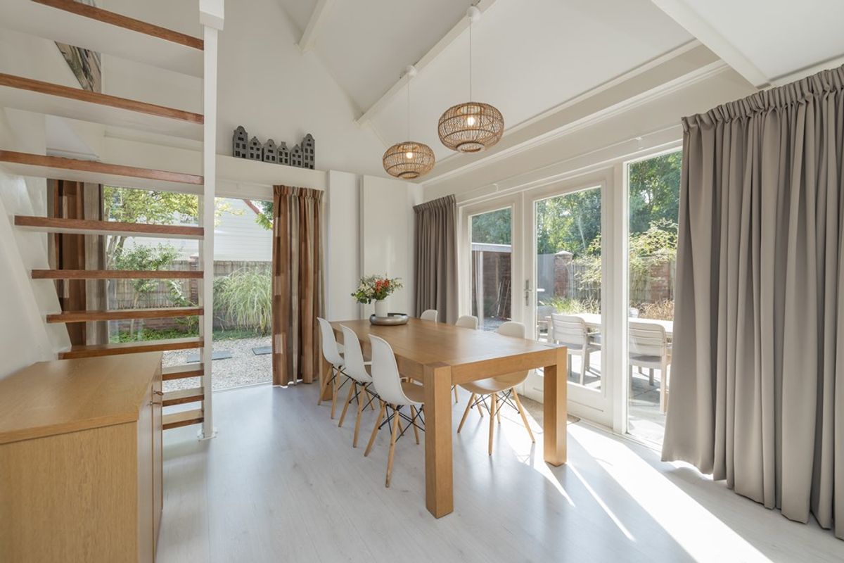 Via de openslaande deuren aan de voorzijde en aan de tuinzijde is de keurig aangelegde tuin te bereiken. Met maar liefst twee terrassen dus zon én schaduw zijn verzekerd. Daarnaast is er een fraaie overkapping met een onderhoudsvrij (EPDM) dak.