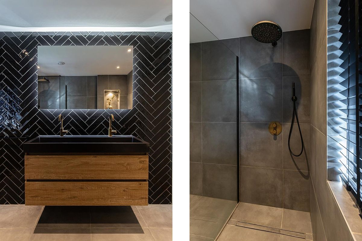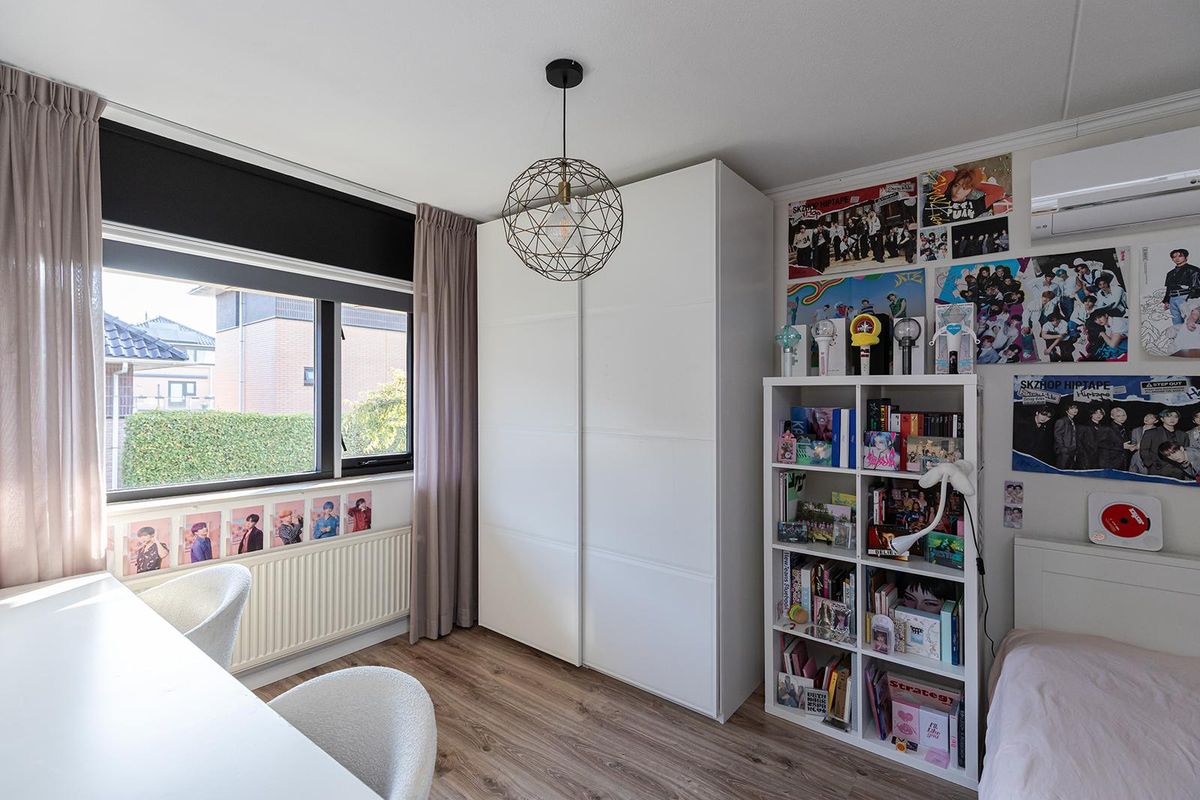Op de eerste verdieping bevinden zich drie comfortabele slaapkamers, waarvan één momenteel is ingericht als walk-in closet. De badkamer (2020) is modern en luxe uitgevoerd met taupekleurige tegels, een zwarte accentmuur, inloopdouche met regendouche en handdouche, wandtoilet en een stoer badmeubel met dubbele wastafel. De ingebouwde spotjes en vloerverwarming maken het geheel compleet.