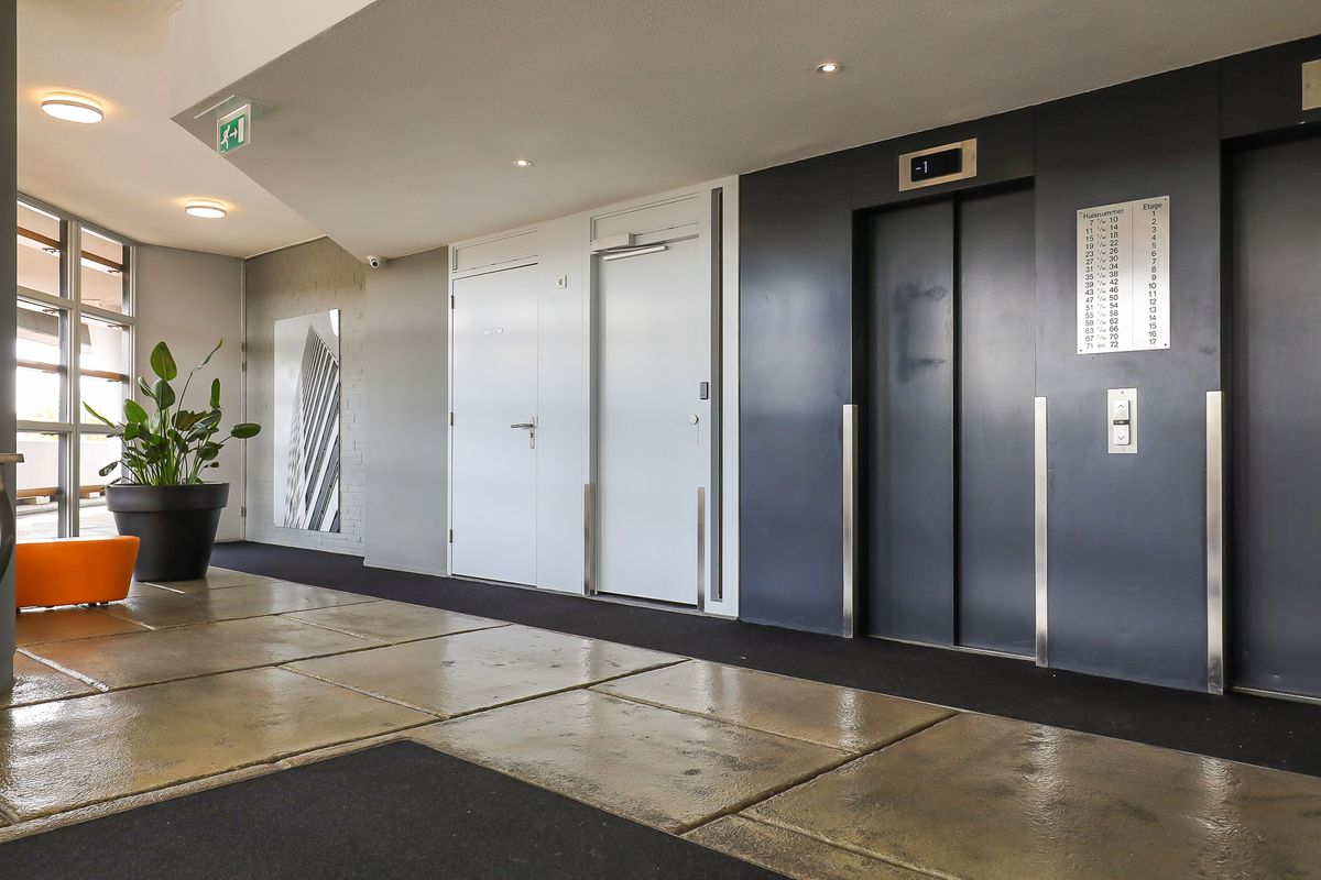 A combination of a good central location, beautiful view, neat finish and excellent light. This spacious 3-room apartment with its own parking space at Ecuplein 47 is located on the 11th floor of the stately Ecutors, and therefore offers a lot of tranquility and a wide view of the surroundings.