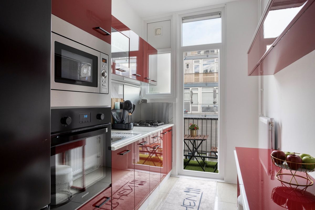 De woonkamer is licht en ruim, heeft strak gestuukte wanden en plafond, mooie inbouwspots en kunststof kozijnen. De keuken ligt aan de achterzijde en is voorzien van een moderne keukeninrichting met (inbouw)apparatuur. Via de keuken kom je op het balkon.