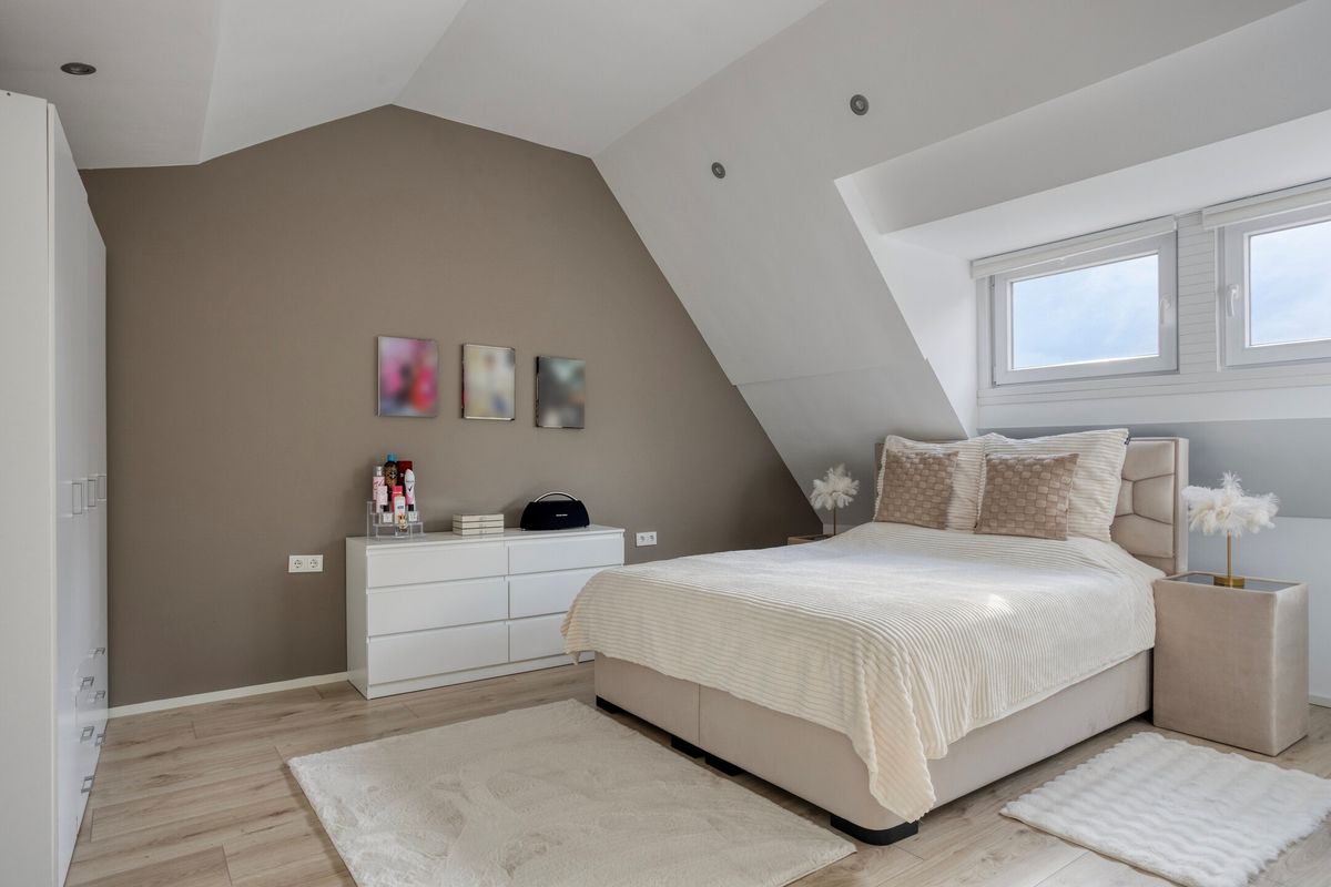 Deze verdieping is tijdens de modernisering helemaal opnieuw ingedeeld. Je komt direct in de royale masterbedroom met strak gestuukte wanden en plafond, laminaatvloer en kunststof kozijnen. Vanuit deze slaapkamer zijn de wasruimte, badkamer en 2e slaapkamer bereikbaar. De badkamer is voorzien van een douche, wastafelmeubel en 2e toilet.