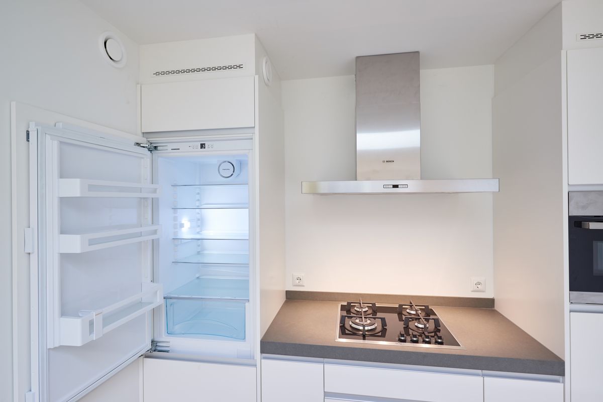 This beautifully finished apartment has its entrance on the fourth floor. Once upstairs on the fifth floor, you enter the bright living room with an open kitchen at the rear of the apartment. The sliding doors and French balcony let in plenty of sunlight and a refreshing breeze. In the hallway you’ll find the bathroom with walk-in shower and vanity, a laundry room for your washer and/or dryer, and a separate toilet. The two spacious bedrooms are at the front, overlooking the street. A fixed staircase and an electrically operated skylight lead you to the large roof terrace, where you can enjoy the sun all day long.
