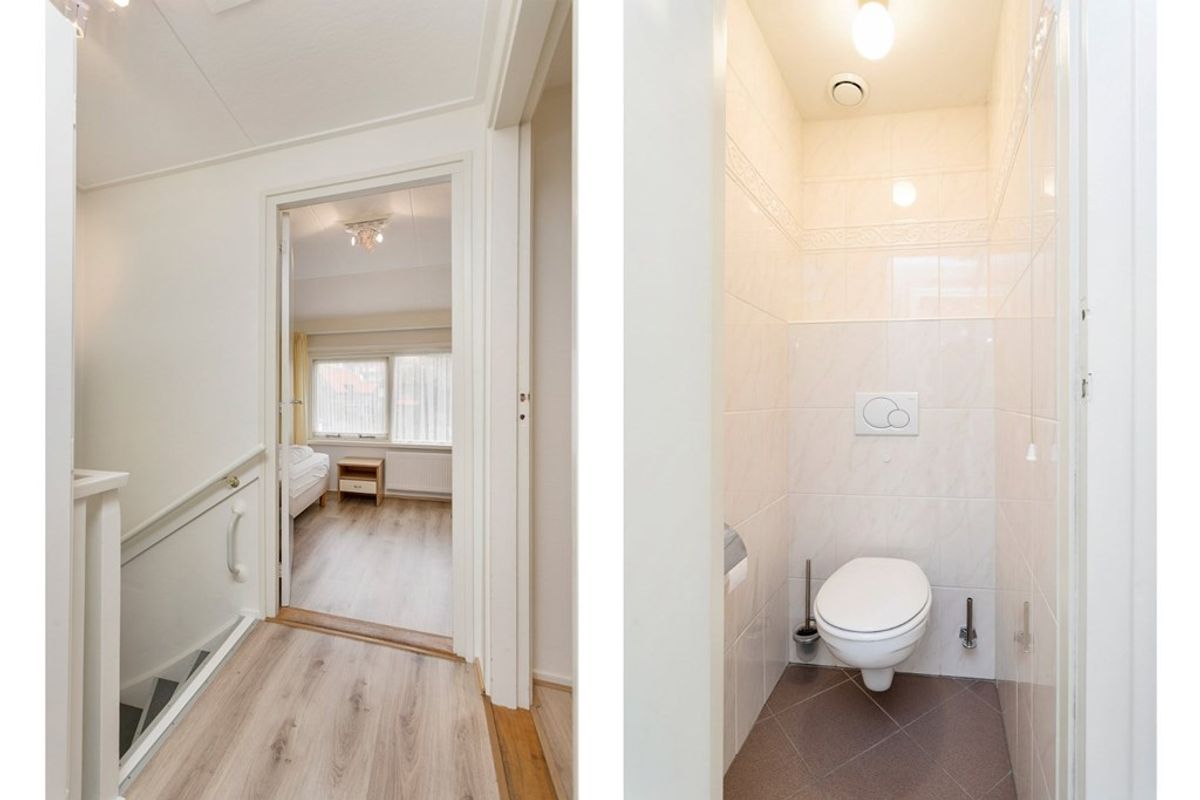 Op de eerste verdieping wordt u verwelkomd door een overloop die leidt naar de drie slaapkamers, de badkamer en een apart toilet. Alle slaapkamers beschikken over een eigen wastafel, zodat uw gasten over voldoende faciliteiten beschikken. De badkamer is uitgerust met een douche en een wastafelmeubel. De zolder is bereikbaar via een vlizotrap.