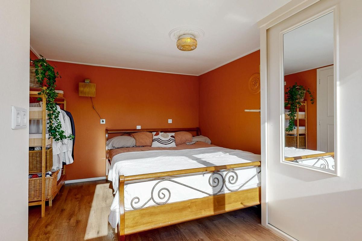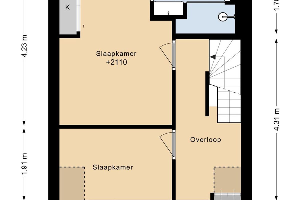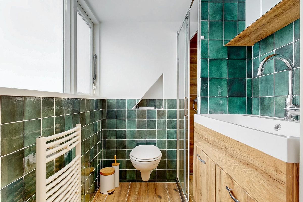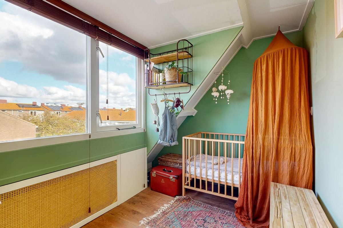 Op de eerste verdieping zijn een badkamer, praktische werkplek en twee slaapkamers die beide een prettige lichtinval en een praktische indeling hebben. De grootste kamer ligt aan de achterzijde en vormt nu de ouderslaapkamer met een mooie en efficiënte inbouwkast, zicht op de achtertuin en toegang tot de nieuwe badkamer. Deze is strak en tijdloos afgewerkt met een neutrale kleurencombinatie. Hier vind je een ruime douche en brede wastafel met sfeervol meubel, een toilet en inbouwverlichting. Een groot raam geeft veel daglicht. Aan de voorzijde ligt de tweede slaapkamer met zicht op de straat. Deze kamer is door de huidige bewoners in gebruik als kinderkamer. Op de overloop is bovendien een maatwerk bureau gerealiseerd die een extra werkplek vormt.
