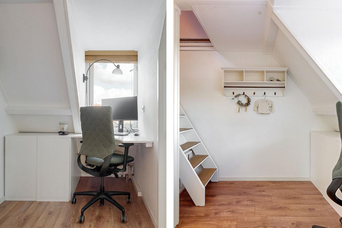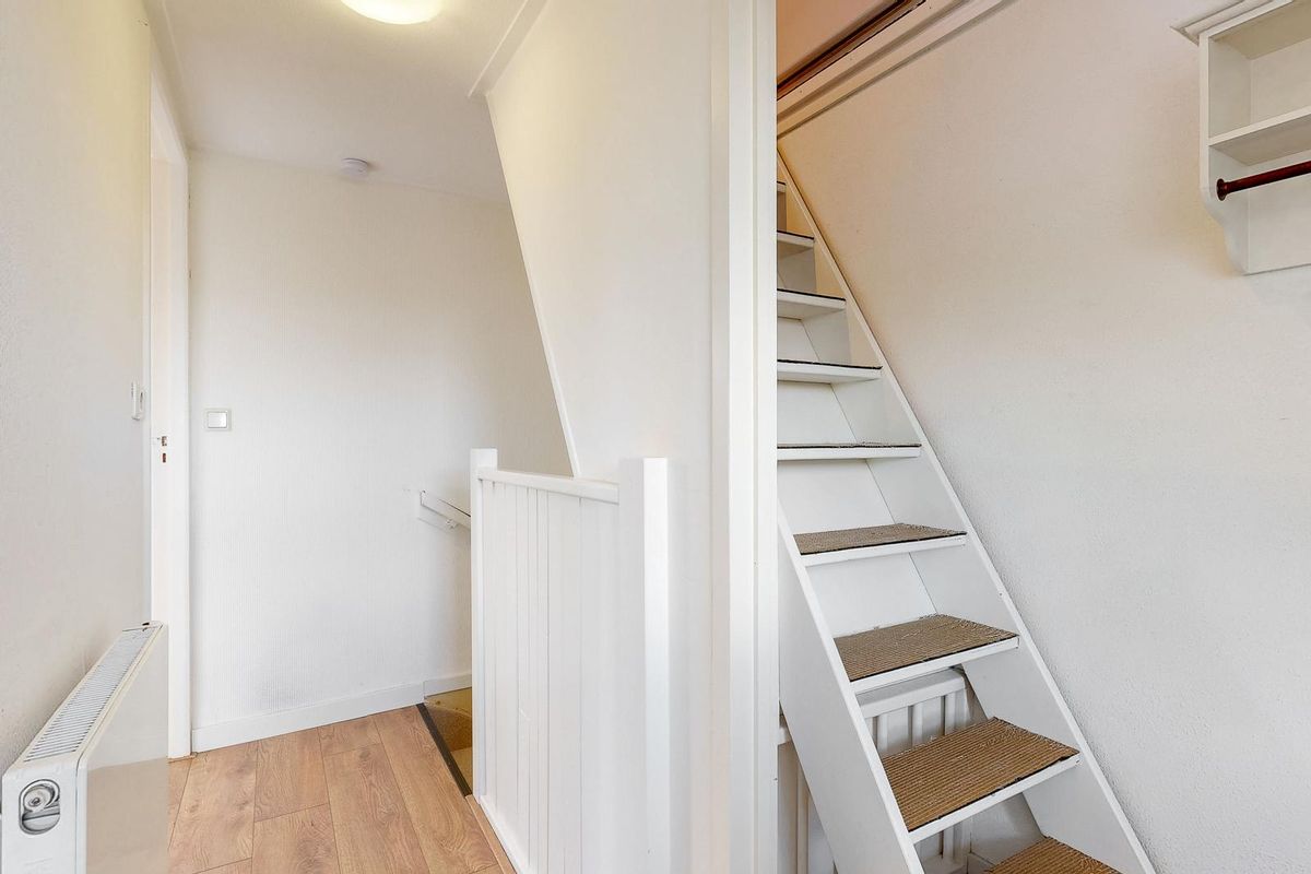 De tweede etage is bereikbaar door middel van een vaste trap en beschikt over veel bergruimte. Het dakvenster zorgt voor daglicht en er is op de zolder veel opbergruimte gecreëerd door middel van kasten onder de schuine delen van het dak. Bovendien hebben de huidige bewoners hier een slaapplek ingericht. Ondanks dat deze ruimte niet meegerekend mag worden tot woon-vierkante meters, is dit een zeer toegankelijke en bruikbare ruimte