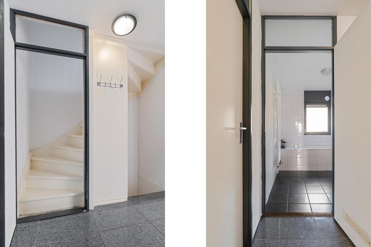 In de entreehal bevindt zich de ingang naar de woonkamer, de meterkast en de separate toiletruimte.