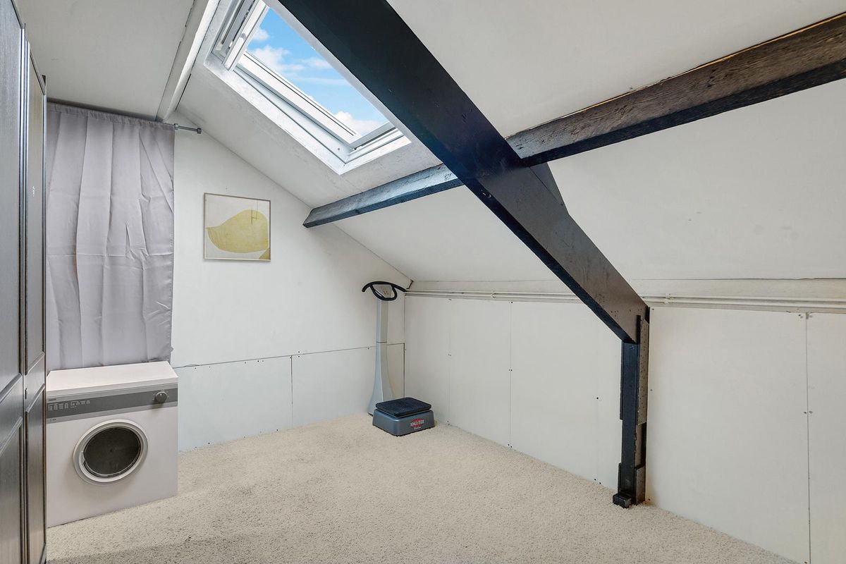 De zolder is verdeeld in twee gedeelten. Het eerste deel beschikt over witgoedaansluitingen en biedt toegang tot de cv-ruimte. Het tweede deel is ingericht als extra slaapkamer of multifunctionele ruimte, ideaal als hobbykamer, werkkamer of logeerkamer.