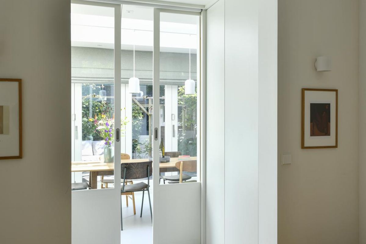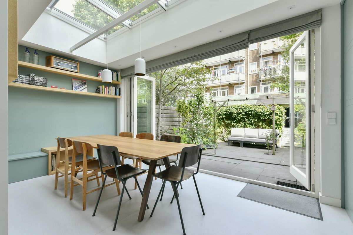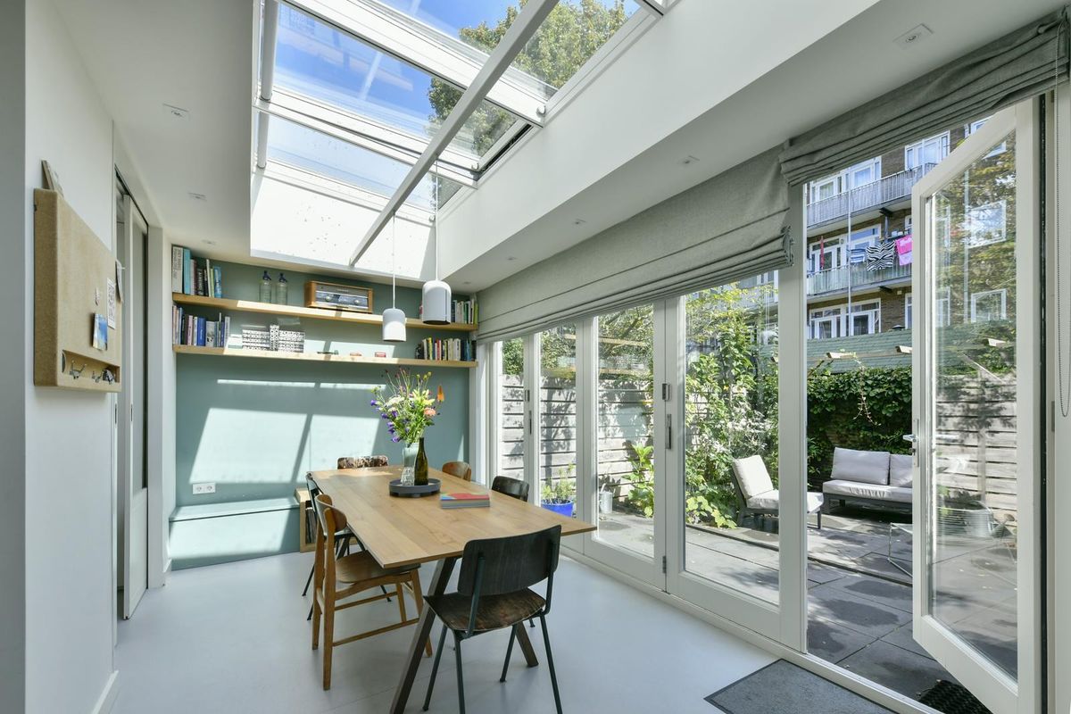 You will probably automatically walk straight into the cozy kitchen diner (2018), which has underfloor heating in the sitting area with a solid table and matching chairs. This naturally calls for game nights, dinners, or drinks with friends and family. Due to the wide folding doors with HR++ glass, you can gaze endlessly at the green garden, while the light falls pleasantly inside, through the remote-controlled skylights.