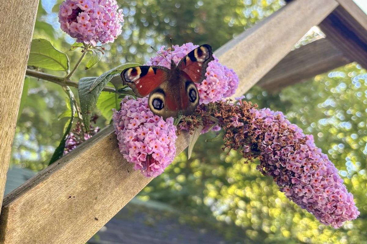 - Grote achtertuin (38 m2) met terras, beplanting en schuurtje (6 m2);