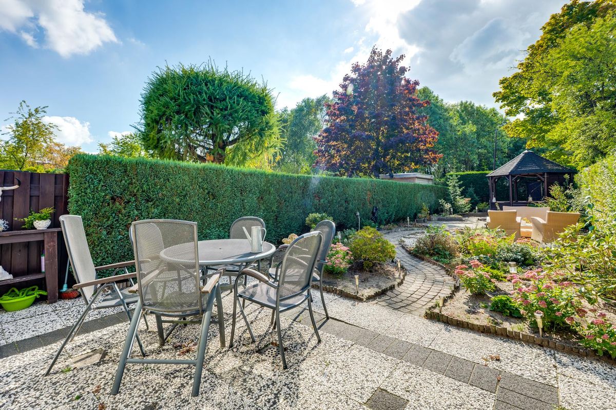 De voortuin is ingericht met volwassen beplanting, een oprit met toegang tot de garage en uiteraard een pad naar de voordeur. In de achtertuin vind je een groen oase, veel privacy