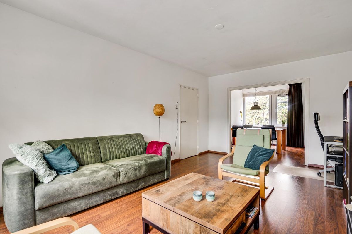 Entree met hal voorzien van laminaatvloer en toiletruimte. De royale woonkamer (ca. 31,4 m²) heeft grote ramen aan zowel de voor- als achterzijde, wat zorgt voor een prettige lichtinval. Vanuit de woonkamer is het balkon aan de voorzijde bereikbaar.